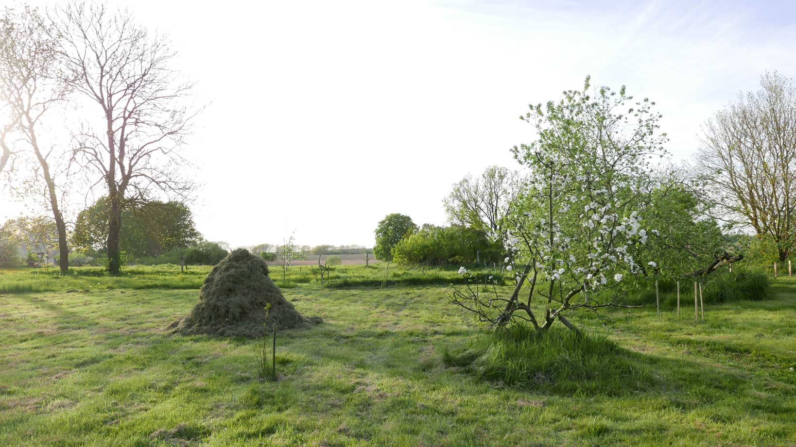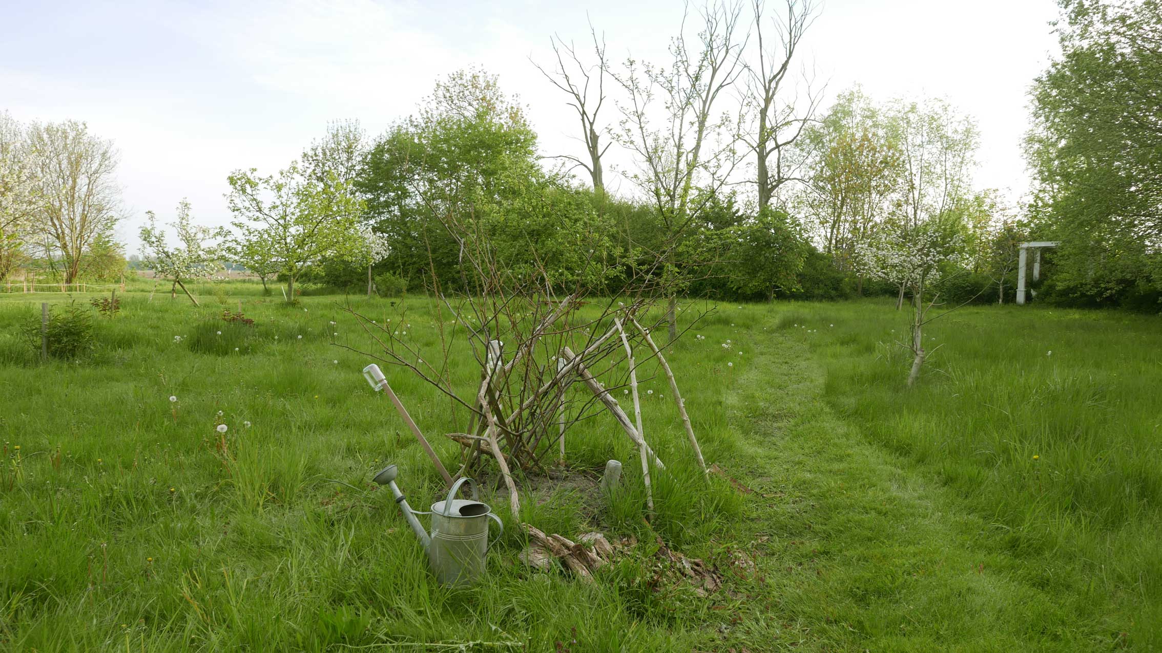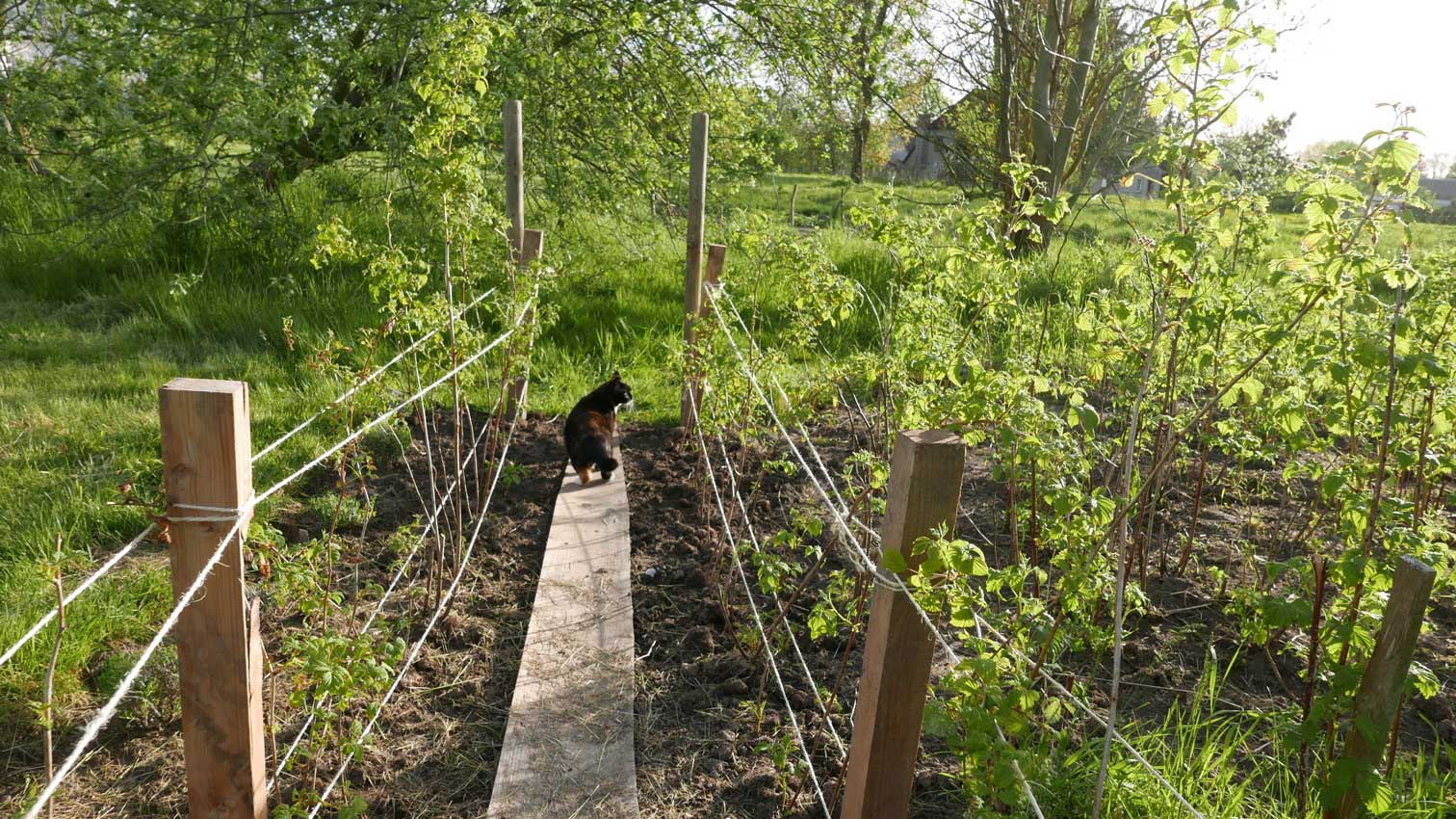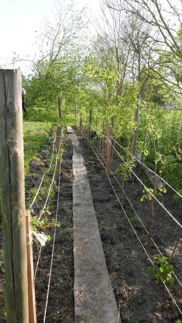die neuen Anlagen für die Himbeern nun unten bei dem Spargel