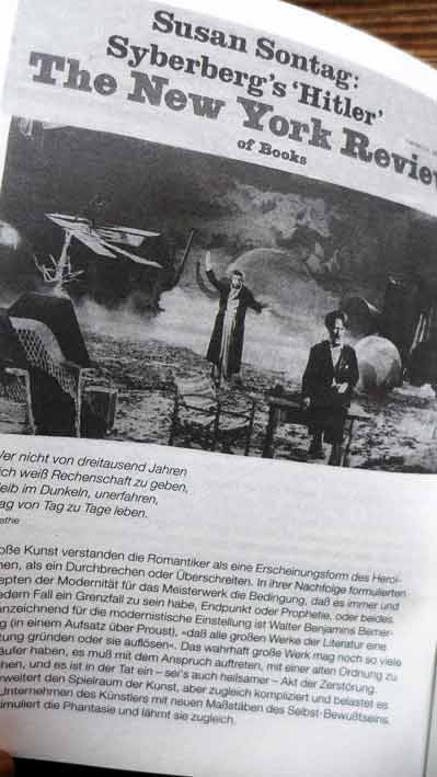 Die anderen Frage nach dem Hitler als Film aus Deutschland, immer wieder. Ob er heute wohl anders. nach fast 40 Jahren, sein würde, obwohl doch erfolgreich als Tat. Die Antwort des Urhebers kann nur der Hinweis auf das, was nachher entstand, sein. In den Monologen. Hier sowenig akzeptiert, wie das Hitler-Gericht als Film selbst.
