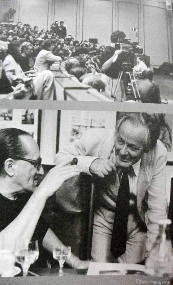Auch Heiner Müller mit seiner Tat als Verantwortlicher für die Akademie ost-damals gerade noch- kam ins Spiel. Mit seinem, Tribonal in Sachen Deutschland vor 25 Jahren nach dem Fall der Mauern. Was im Westen der Freien nicht möglich war, aus Mangel an Freiheit. Ihr damaliger Präsident war Walter Jens. Der noch viel zu lernen hatte.