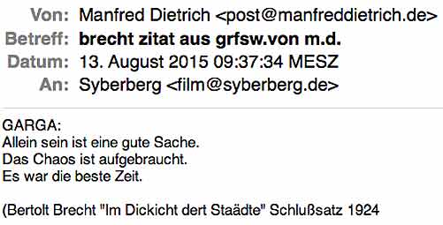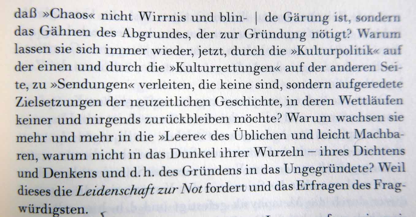 morgen zur Situation in N. nach dem Treffen vor einer Woche . Warum hier wofür noch. Aus dem Abgrund erworben. Das Andere versucht. Konfrontiert mit dem, was es verursacht, auf unterer Ebene. Der Banalität des B. Dass es da nicht bleibt.