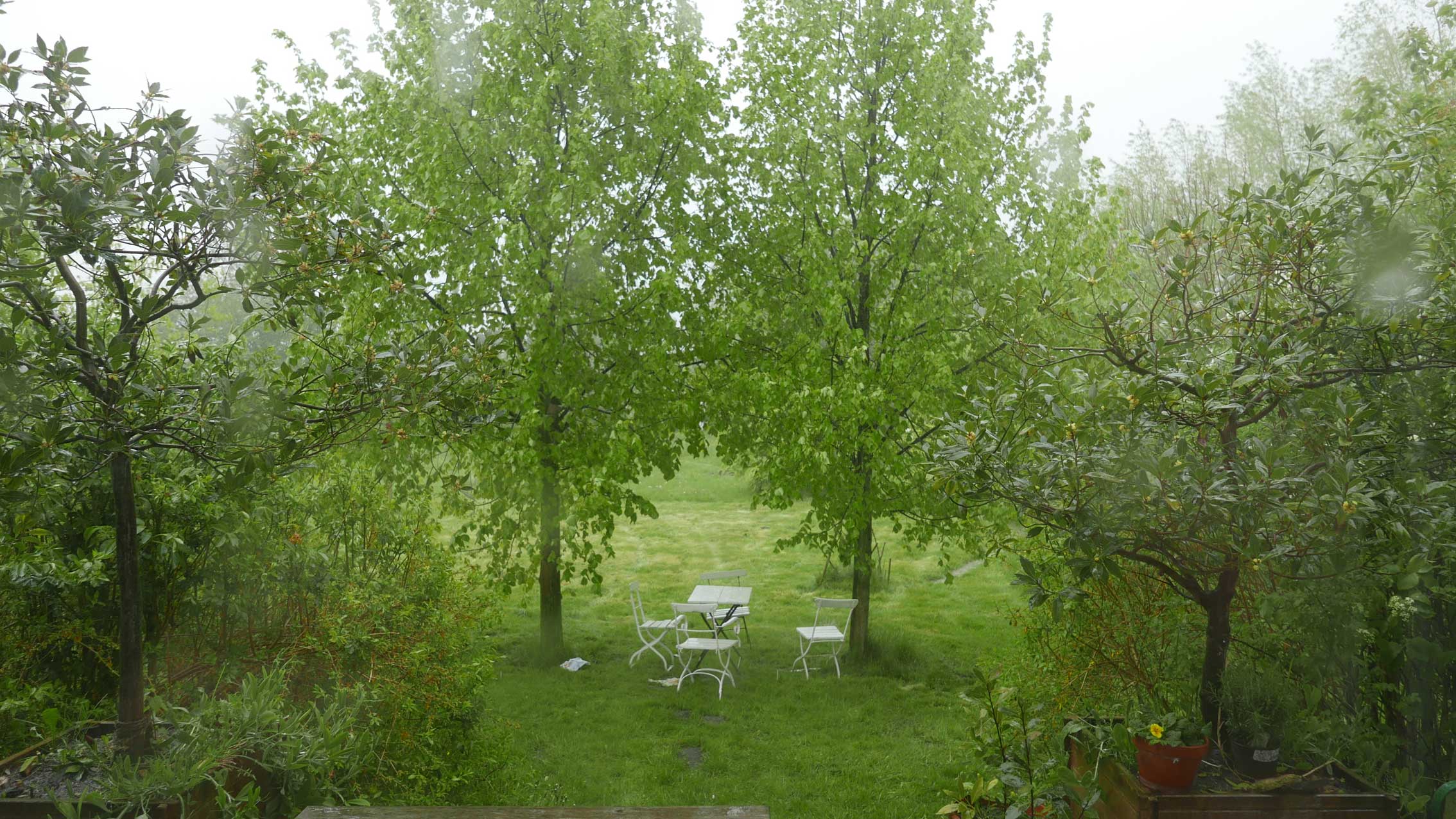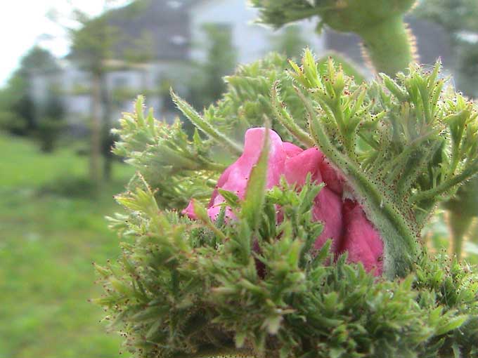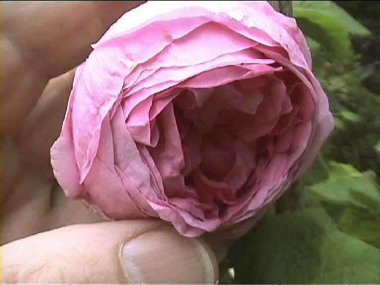 im Feuchten schwer im blassen Rosa die äusseren Blätter der Blüten.