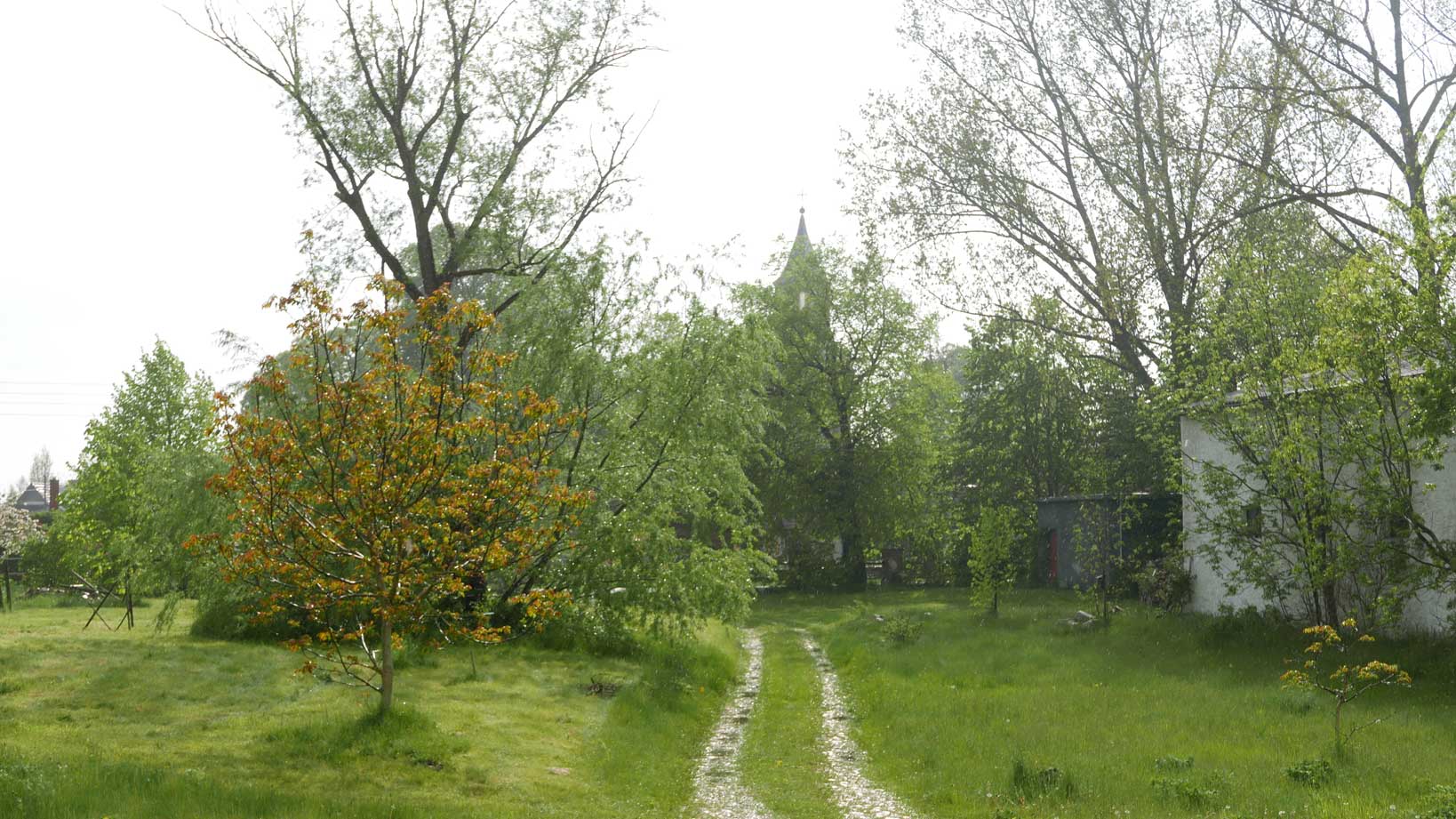 Am Drehkreuz der Achsen von Wegen zum Graben von Ost und West aller Koordinaten zu den Koppeln wieder