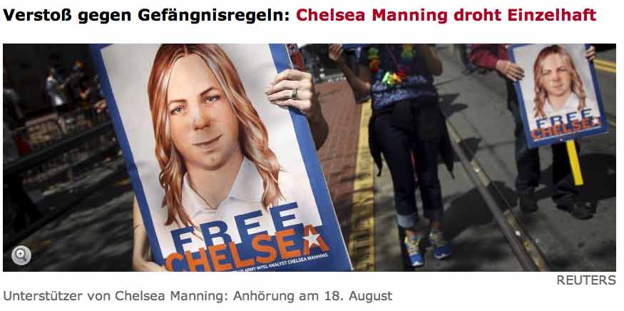 Zu den verbotenen Gegenständen in Mannings Besitz gehörten laut der Anwältin die Memoiren von Friedensnobelpreisträgerin Malala Yousafzai, die "Vanity Fair"-Ausgabe mit Caitlyn Jenner auf der Titelseite sowie der US-Senatsbericht über die Folterpraktiken der CIA.