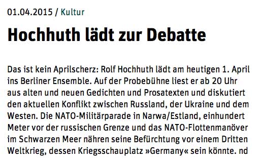 Mittwoch, den 15. April