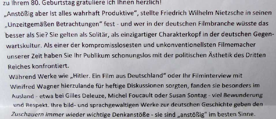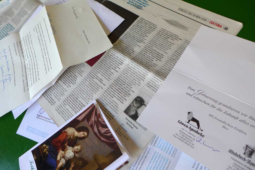 Grüsse aus Lissabon also wie Anrufe aus Paris zu kommen- und eben nichts aus München, 59 Jahre dort Sohn der Stadt, nicht Zeitung noch Kulturamtsträger, und nichts aus Schwerin, wohin das Archiv ins Land gehen könnte und nichts aus Demmin...ausser von der Apotheke des Vertrauens
