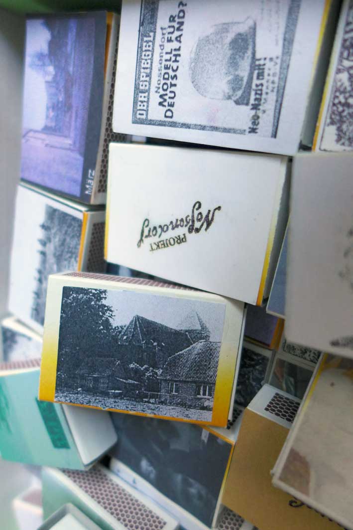 von ...einen Kunstraum, der in Nossendorf geschaffen ist, im Dialog , der das ist nun die Antwort in Form der Streichholzschachteln nach der esrten Zeit