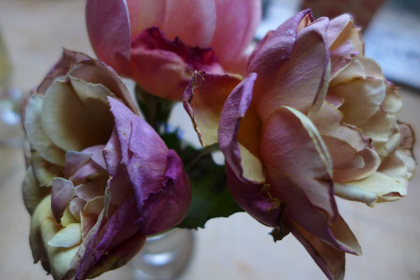 diese Winter-Rosen haben viele Verwandlungen überstanden. Zuesrt waren sie langstielig jetzt in kurzer Vasen immer noch schön.