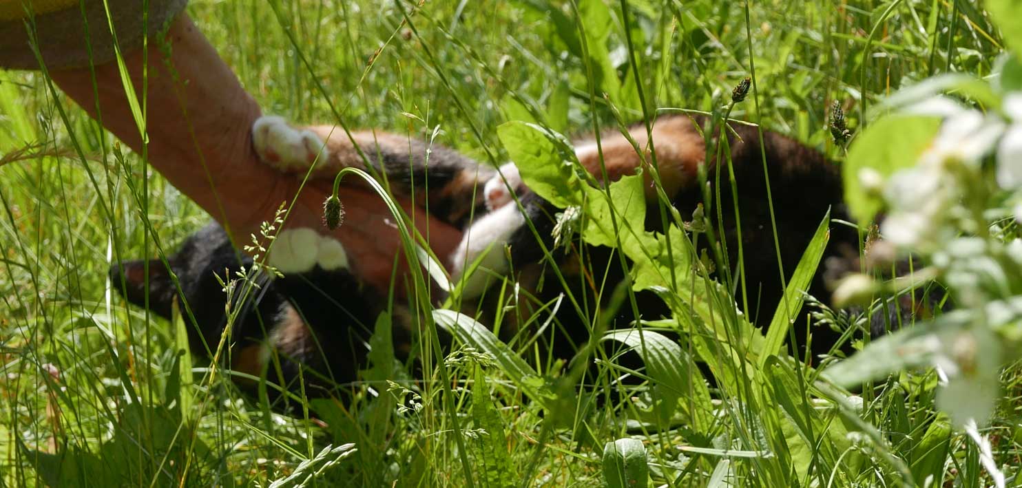 Die Wühlmaus-Zentrale mit 12 Löchern entdeckt und mit Gift verschlossen.