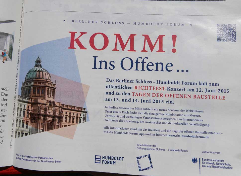 Das Schloss zum ersten Mal für Besucher geöffnet. Die Räume sind nun angeboten nach altem Grund-Riss. Entscheidend wird sein, was sie hineintun werden und wie. Passt auf, noch ist Zeit.