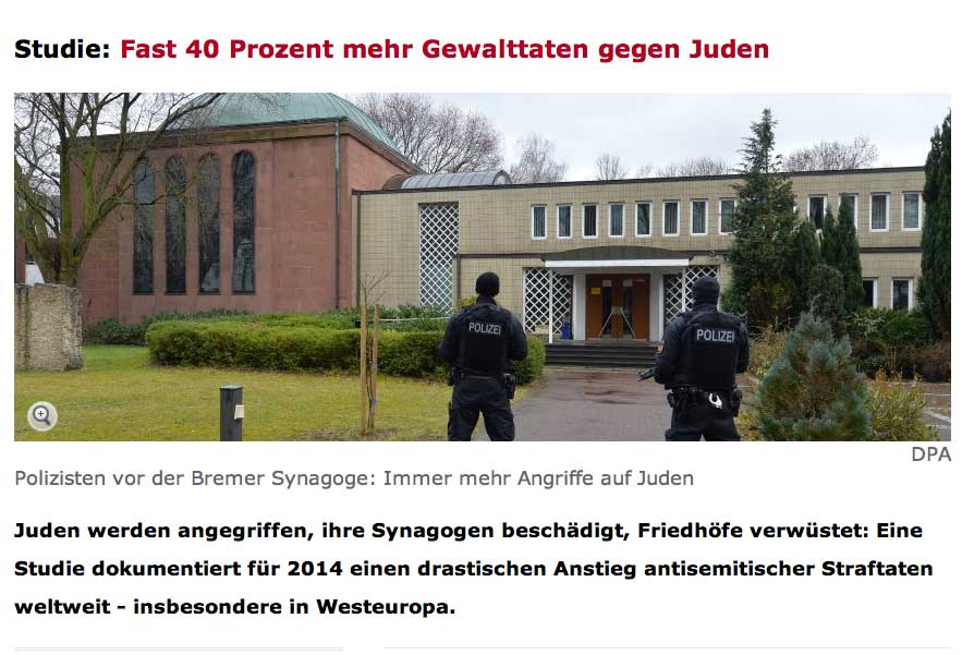 Zuletzt mussten in Frankreich und Belgien jŸdische Schulen von einem gro§en Polizeiaufgebot geschŸtzt werden. Auch in Deutschland wachen SicherheitskrŠfte unter anderem vor Synagogen. Der Grund: Immer wieder kommt es zu antisemitischen †bergriffen - 2014 in noch hšherer Zahl als in den Vorjahren.