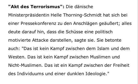 im Radio die Nachricht, dass in einer der Karnevalsreden zwischen Zoten und Blödeleien der Redner plötzlich sagte, wir sind so frei zu sagen, dass es auch frei ist, nicht alles zu tun und zu sagen, was erlaubt ist, dass das Leben unserer Kinder uns lieber ist, als eine Zeichnung des Propheten Mohamet. Lauer Beifall. Und plötzliche Stille.