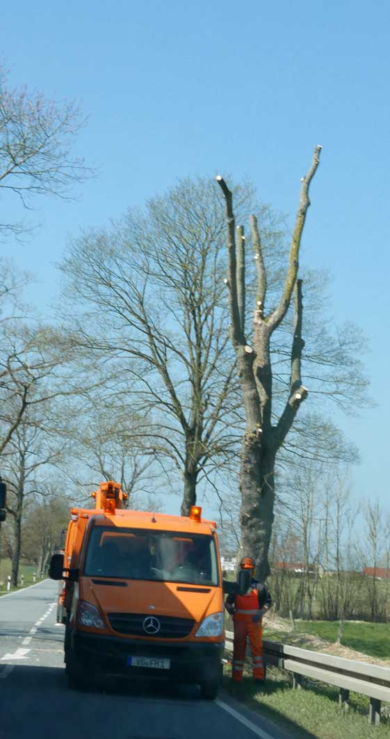 Mit dem Straßenbauamt Güstrow konnte ich mich immer so einigen, dass die Bäume außerhalb der Vogelbrutzeit gefällt werden. Das seit dem 1. Januar 15 zuständige Straßenbauamt Neustrelitz lässt sich darauf nicht mehr ein und beruft sich auf § 39 Abs. 5 Ziffer 2. c) BNatSchG (Verkehrssicherheit). Ich habe daraufhin in der Genehmigung folgende Auflage gegeben: "Vor der Fällung der Gehölze ist zu prüfen, ob geschützte Tierarten betroffen sind. Höhlungen werden gern von Meisen, Staren, Bachstelzen, Sperlingen oder Fledermäusen bezogen. In Kronen von Alleebäumen werden regelmäßig Nester von Tauben, Elstern, Mäusebussarden und kleineren Singvögeln beobachtet."