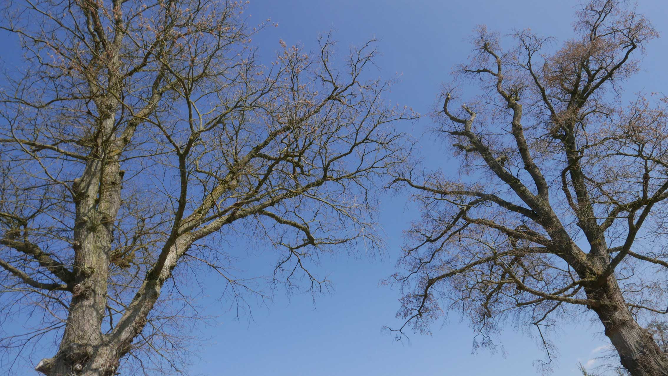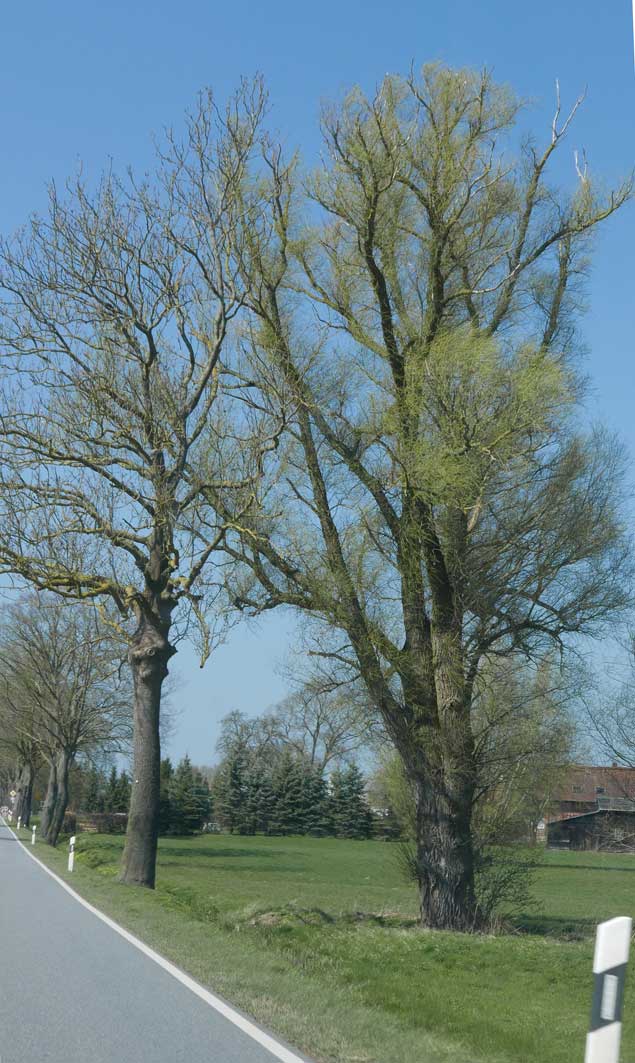es sind die beiden Eingangsbäume von der Landstrasse ins Dorf, links und rechts, eng und hochgeschnitten für das Passieren der landwirtschaftlichen Fahrzeuge.