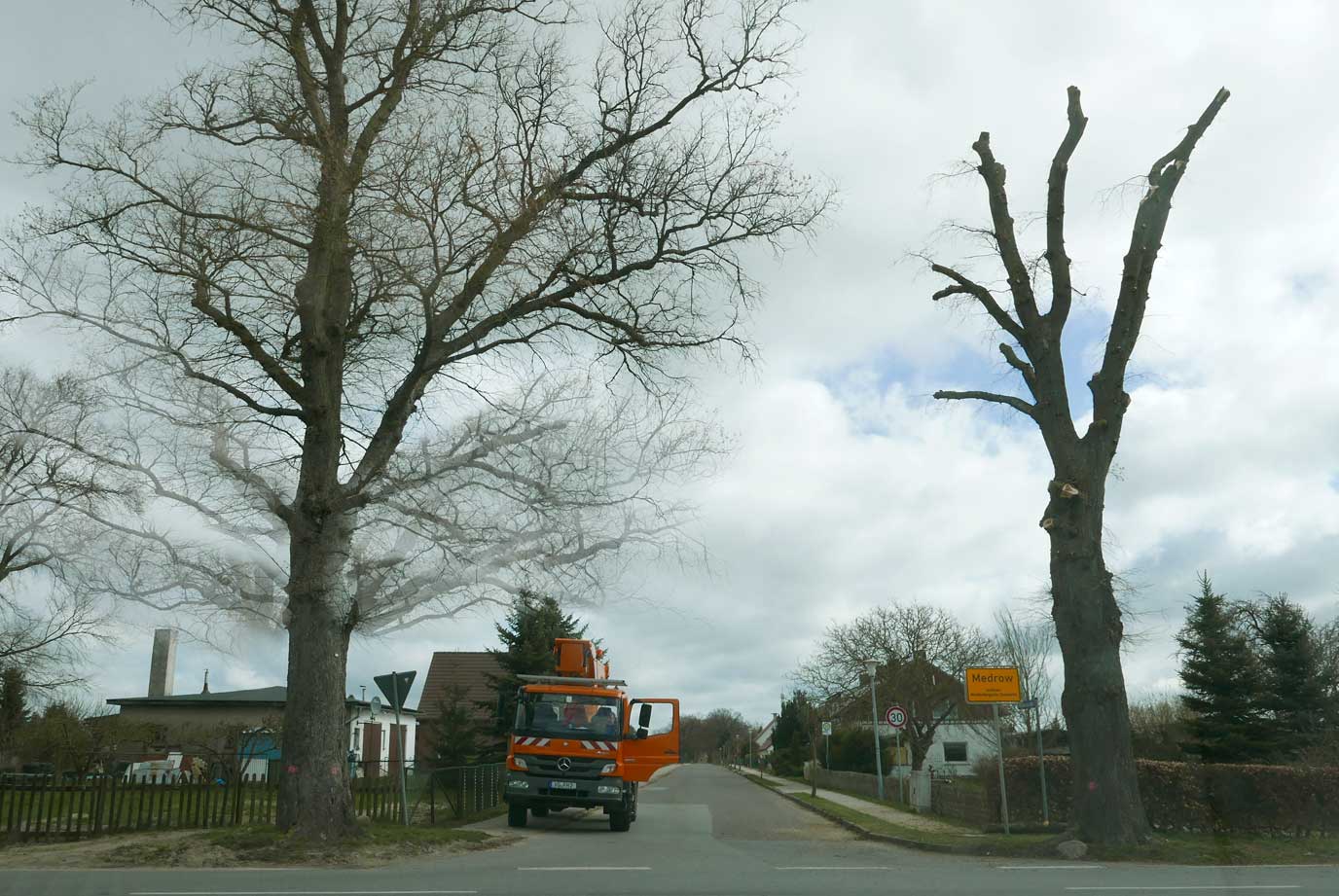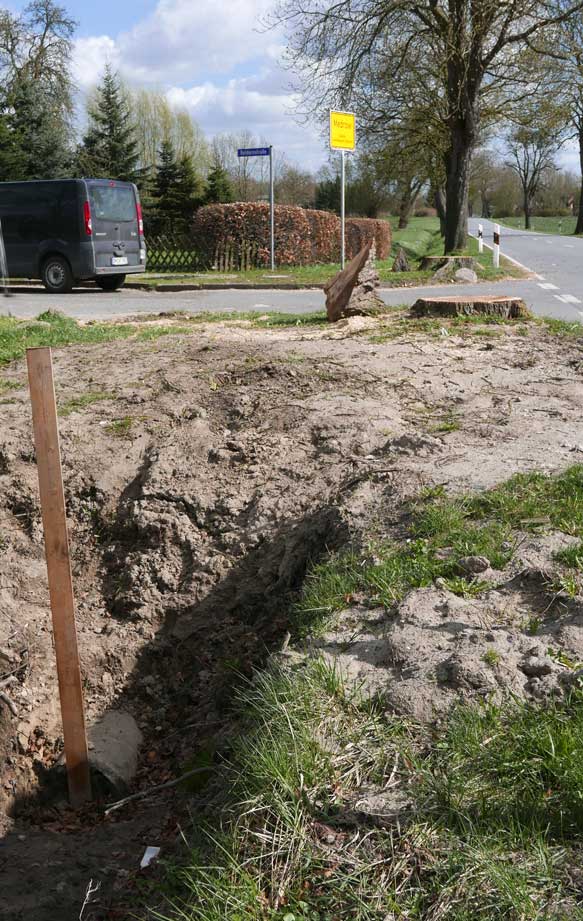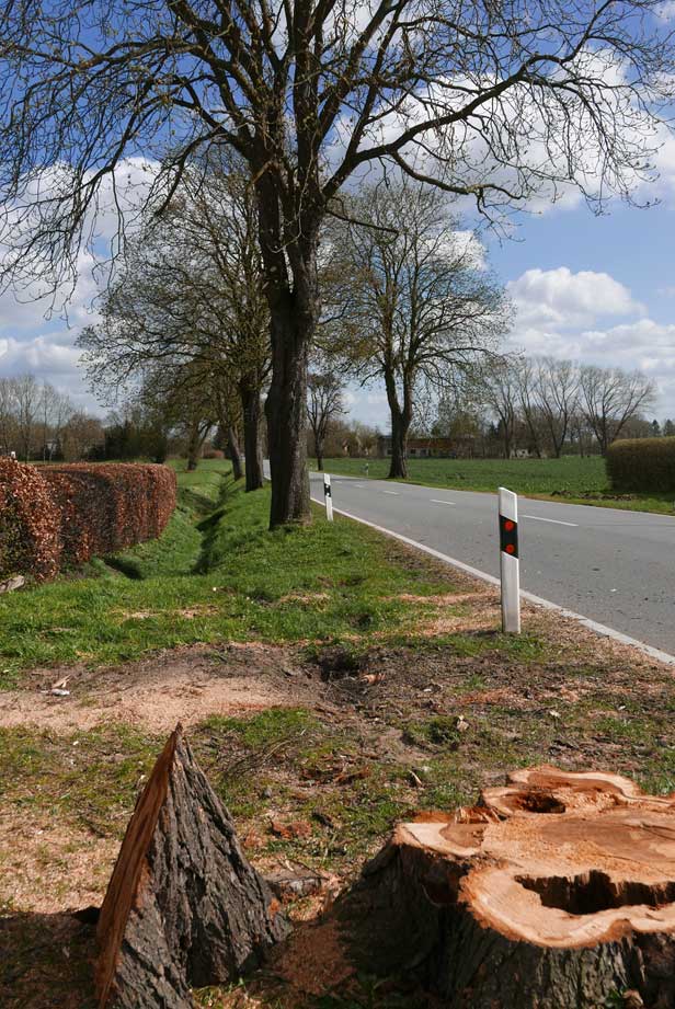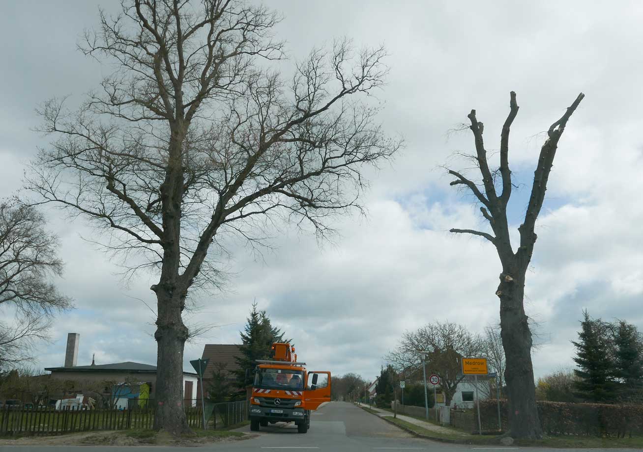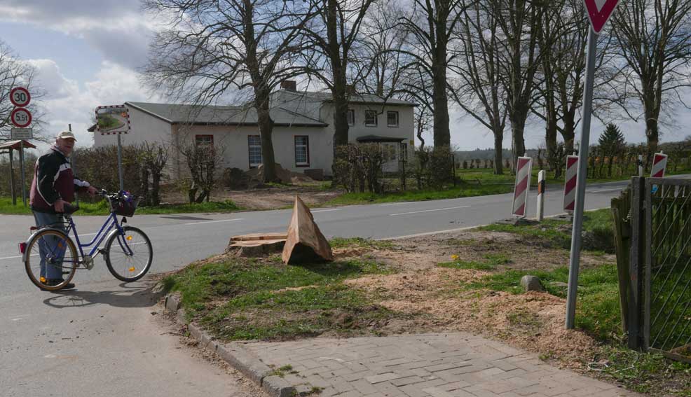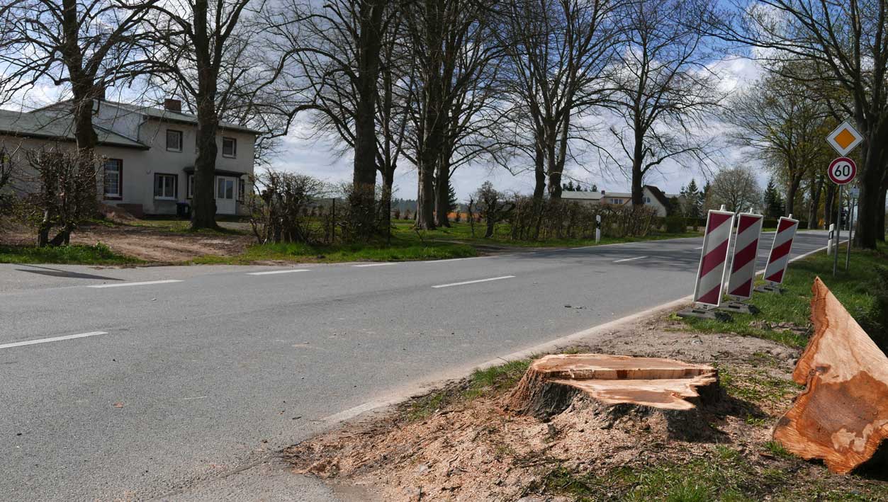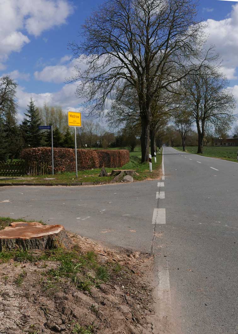 die Bäume 74 und 76 an der L 27 auf der Ostseite in Medrow selbst sind nun gefällt.