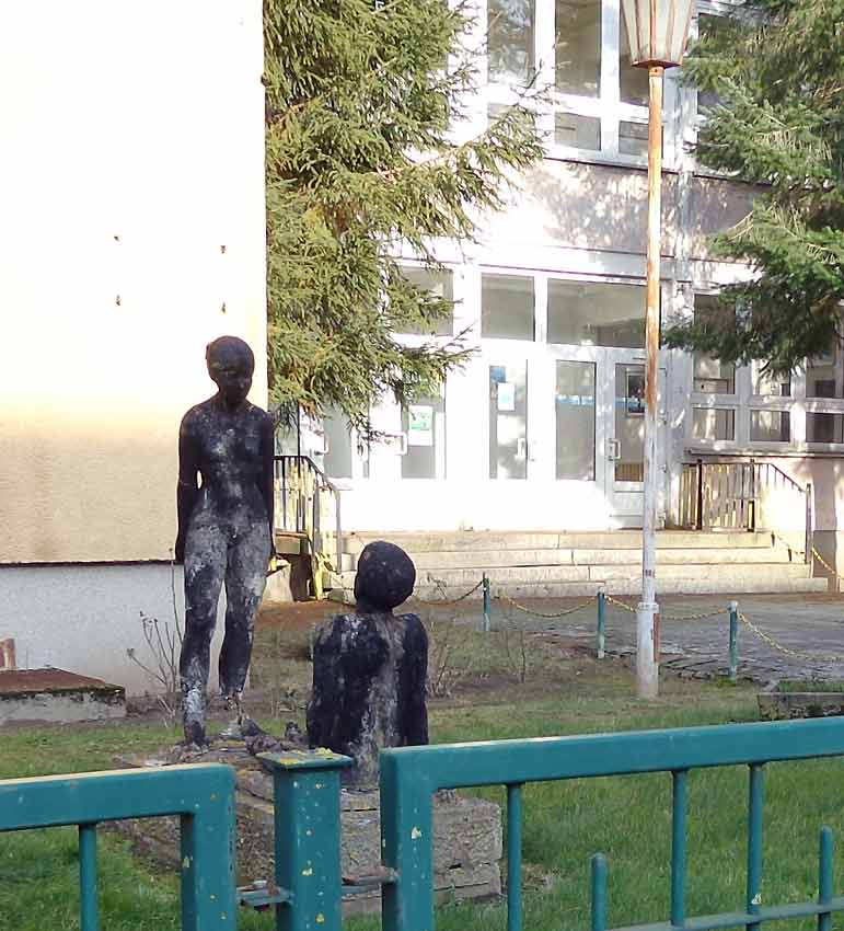 die Karl Schlösser-Figuren vor der Scule in Nossendorf