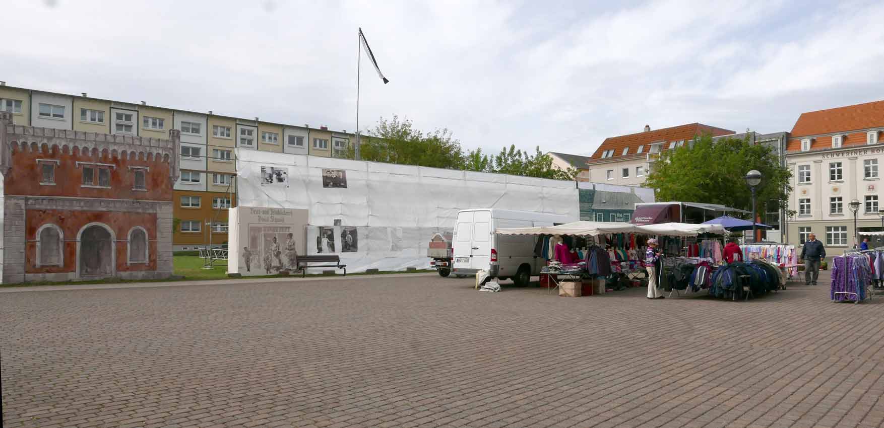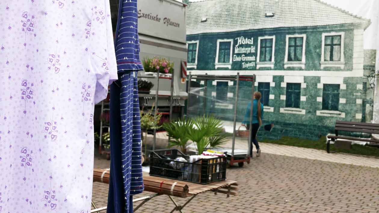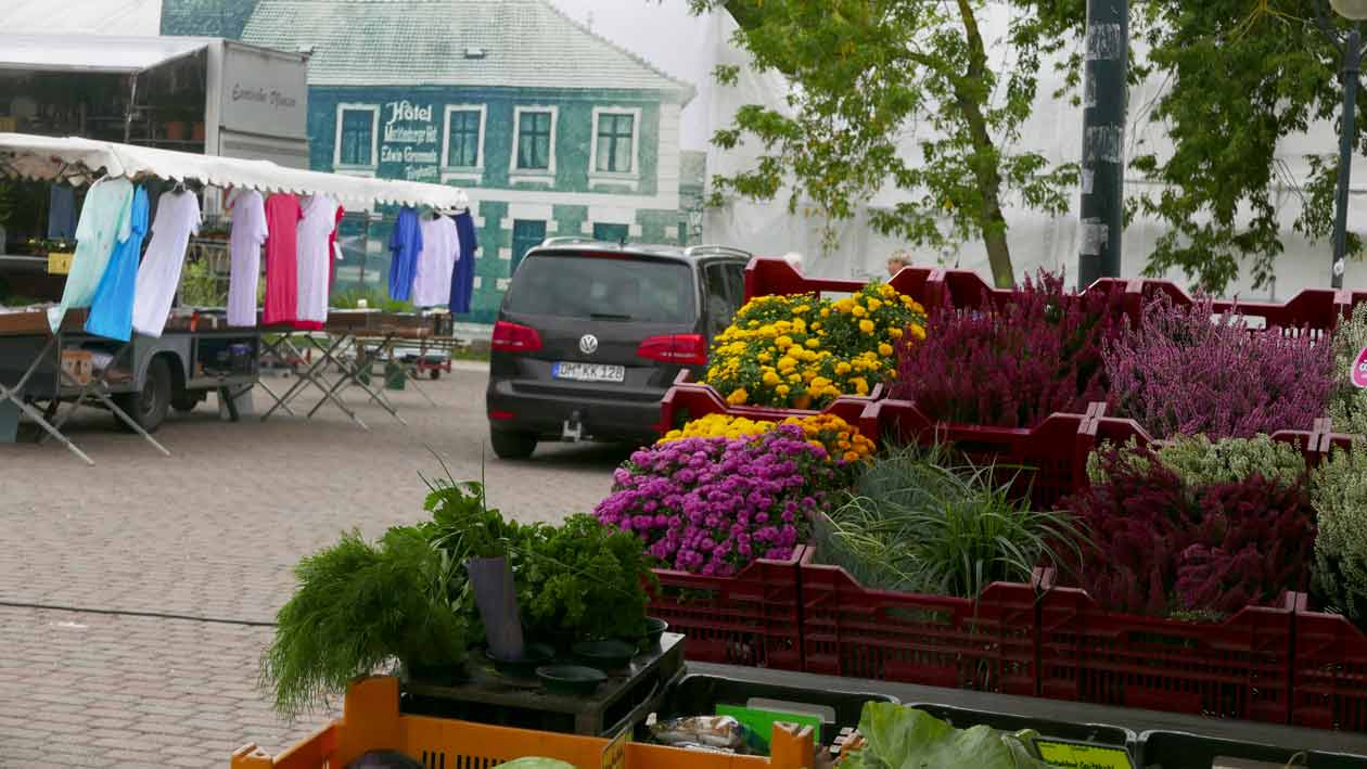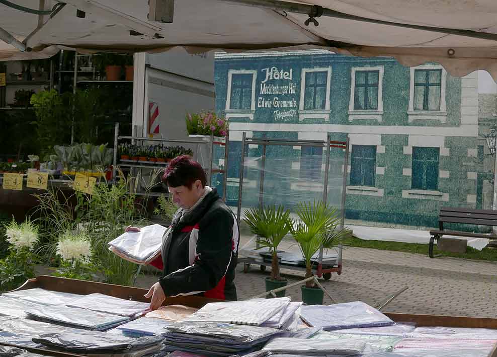 Marktszenen in vollem Betrieb, der Stände und des Hin-ind Hers der sich treffenden Menschen vor alter Kulisse nun auch in Demmin nochmal. Und den Wind der durch das alles hindurch ging kurz angehalten.