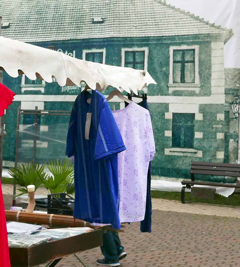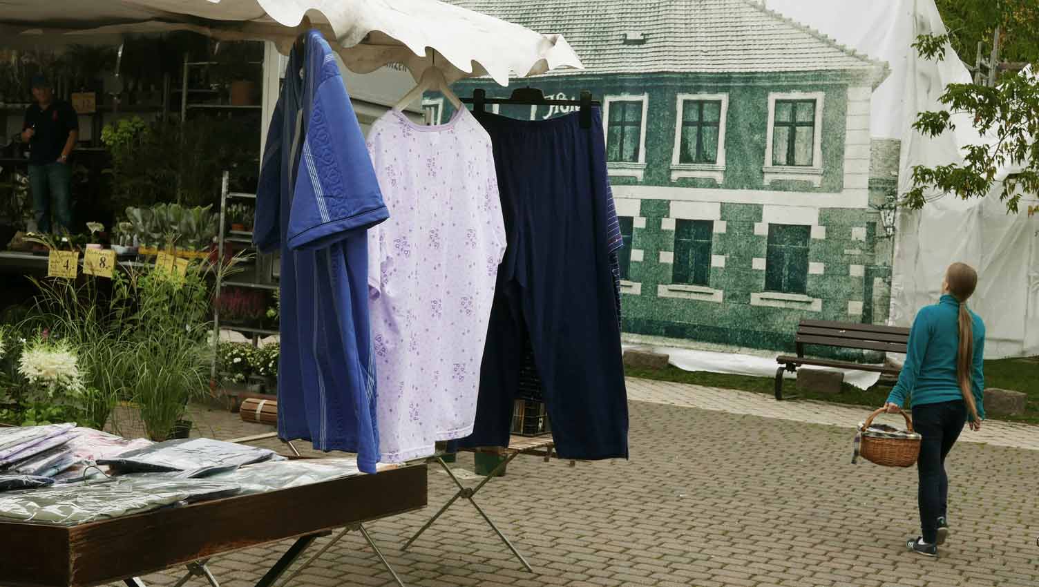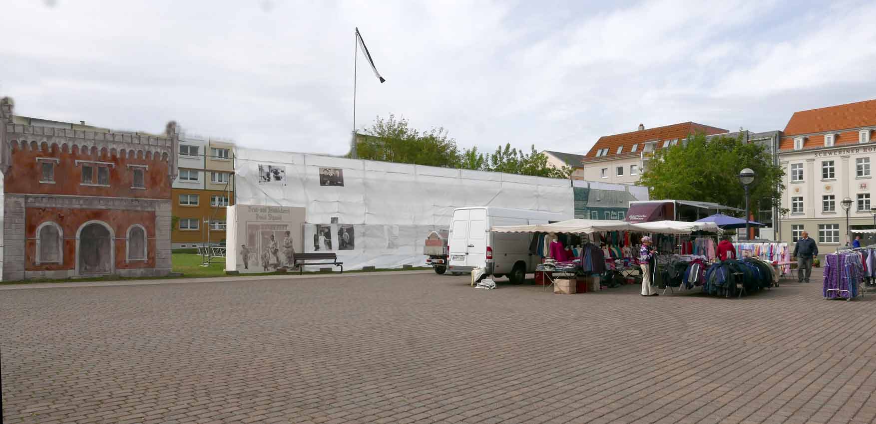 Marktszenen in vollem Betrieb, der Stände und des Hin-ind Hers der sich treffenden Menschen vor alter Kulisse nun auch in Demmin nochmal. Und den Wind der durch das alles hindurch ging kurz angehalten.
