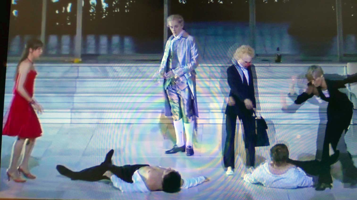 Aus Trailern bei You tube entnommene Bilder. Etwas zufällig. Die DVD funktioniert hier nicht. Was man sehen kann, ist wohl so, dass man sich nicht schämen muss vor dieser Musik und Theaterleuten. Mit Tönen zu diesen Bildern schwieriger. Sie sind anders.