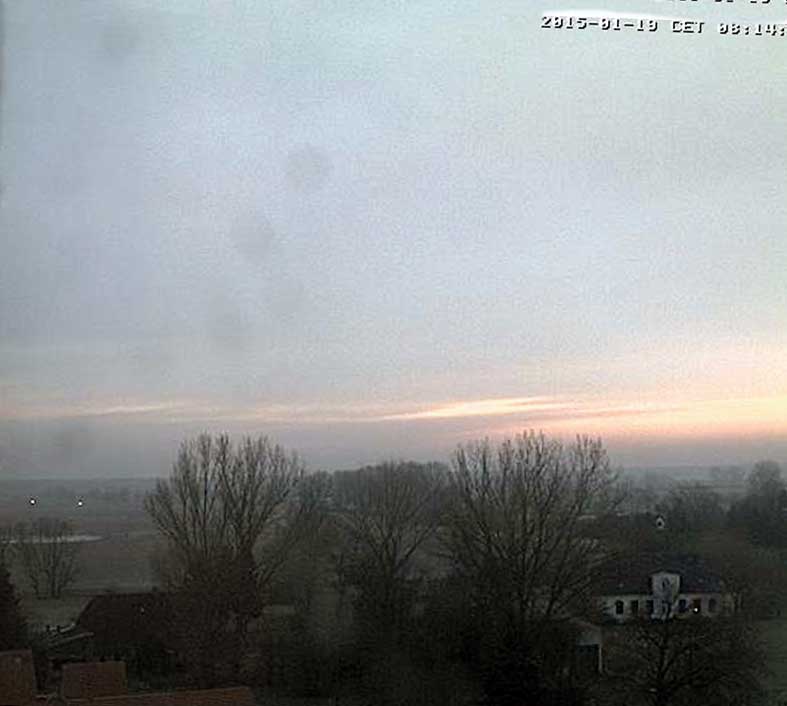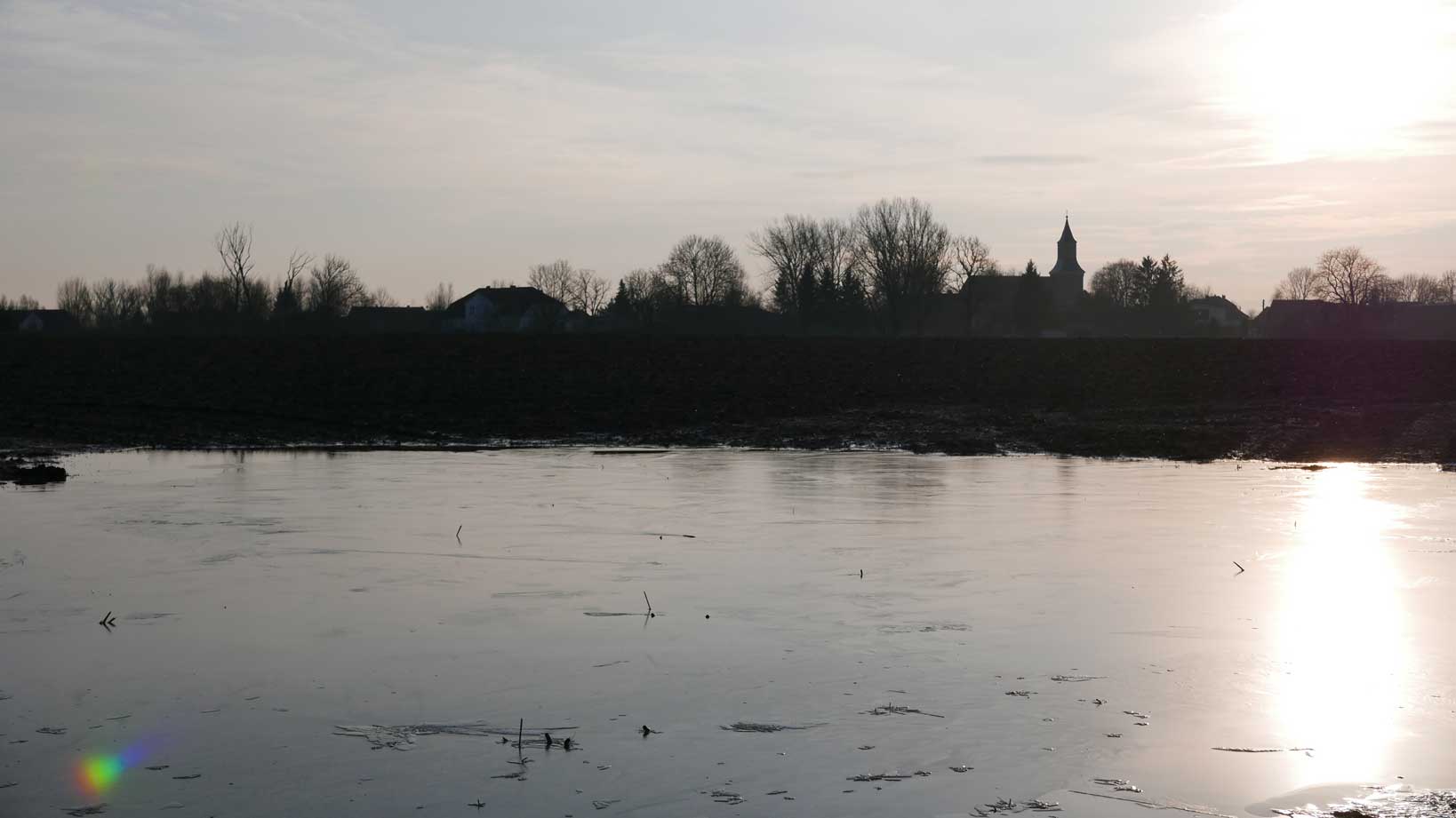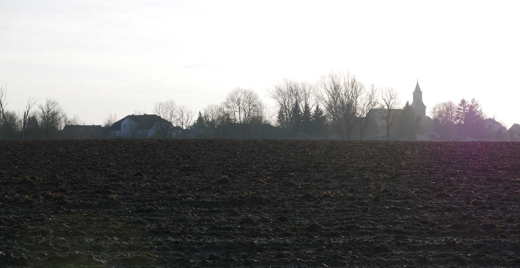 die Bäume ohne Laub erlauben die Struktur der Häuser und des Turms klar zu erkennen
