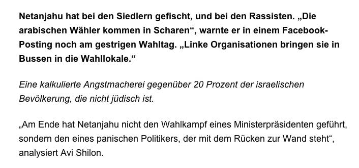 Ein verlorenes Land. Aber die Palästinenser, wer je mit den Juden war, der Verfolgung, ist heute mit den Palästinensern. Wenn sie an den Türen klopfen. Sonst hätten wir nichts gelernt.