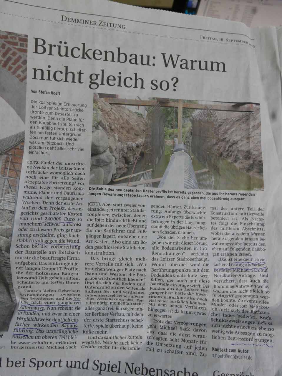 Alles wie es war, aber mit Stahl, die alten steinernen Stützen abgerissen und dadurch gefährdet, was hielt. Immerhin eine Firma schon verschlissen und wäre so einfach gewesen, andersrum zu denken.