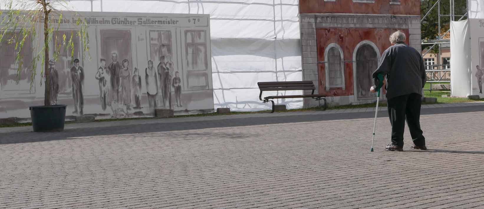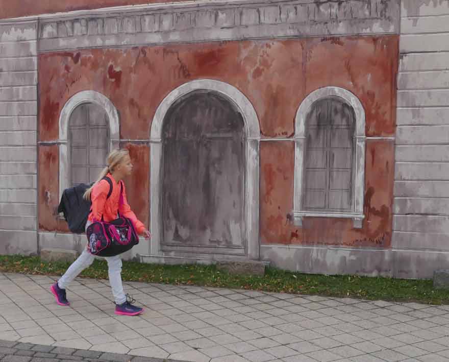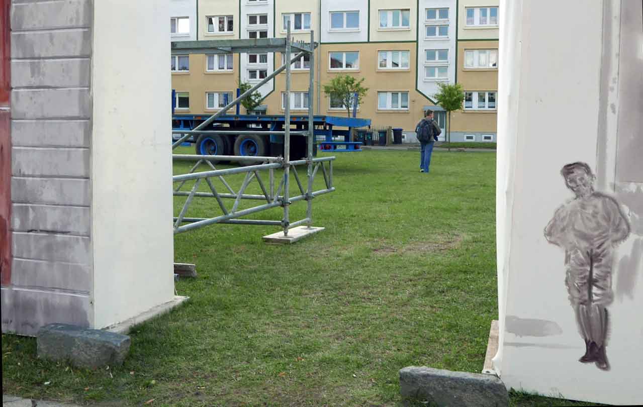durch den Kellergang der Schulweg und dahinter das Monstrum, das weggehört und nicht das Zillehaus, wenn sie gutmeinen mit den Kindern, die so nicht aufwachsen sollten.