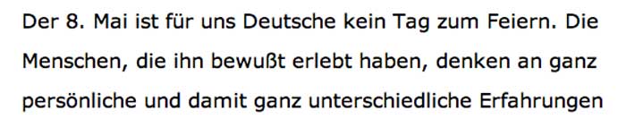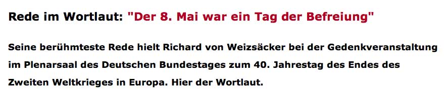 so laut wie jetzt der Beifall, in den Ohren des fast 80-Jahrigen, wenn von der Befreiung nach 1945 gerededet wird, als endlich