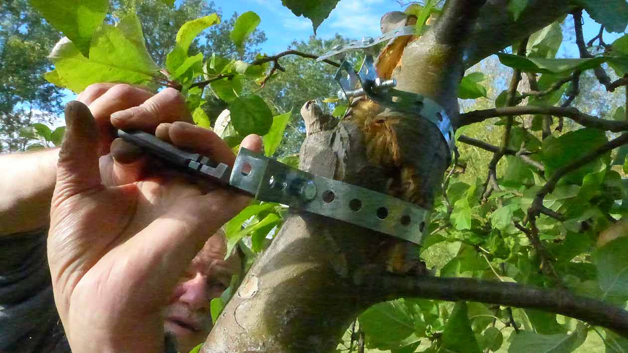 mit Baumwachs innen und darüber mit Lehm und feuchten Tüchern zu umwickeln