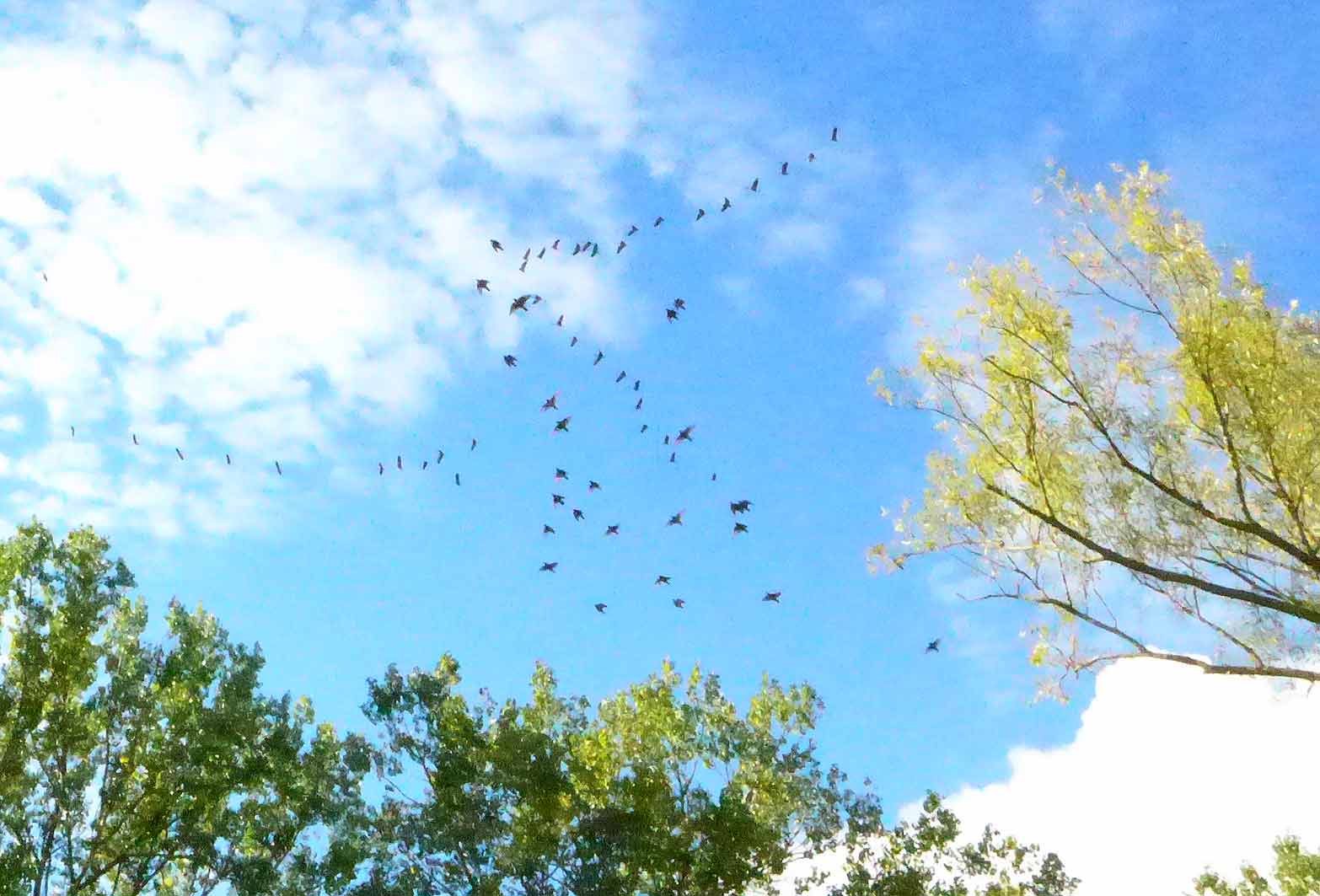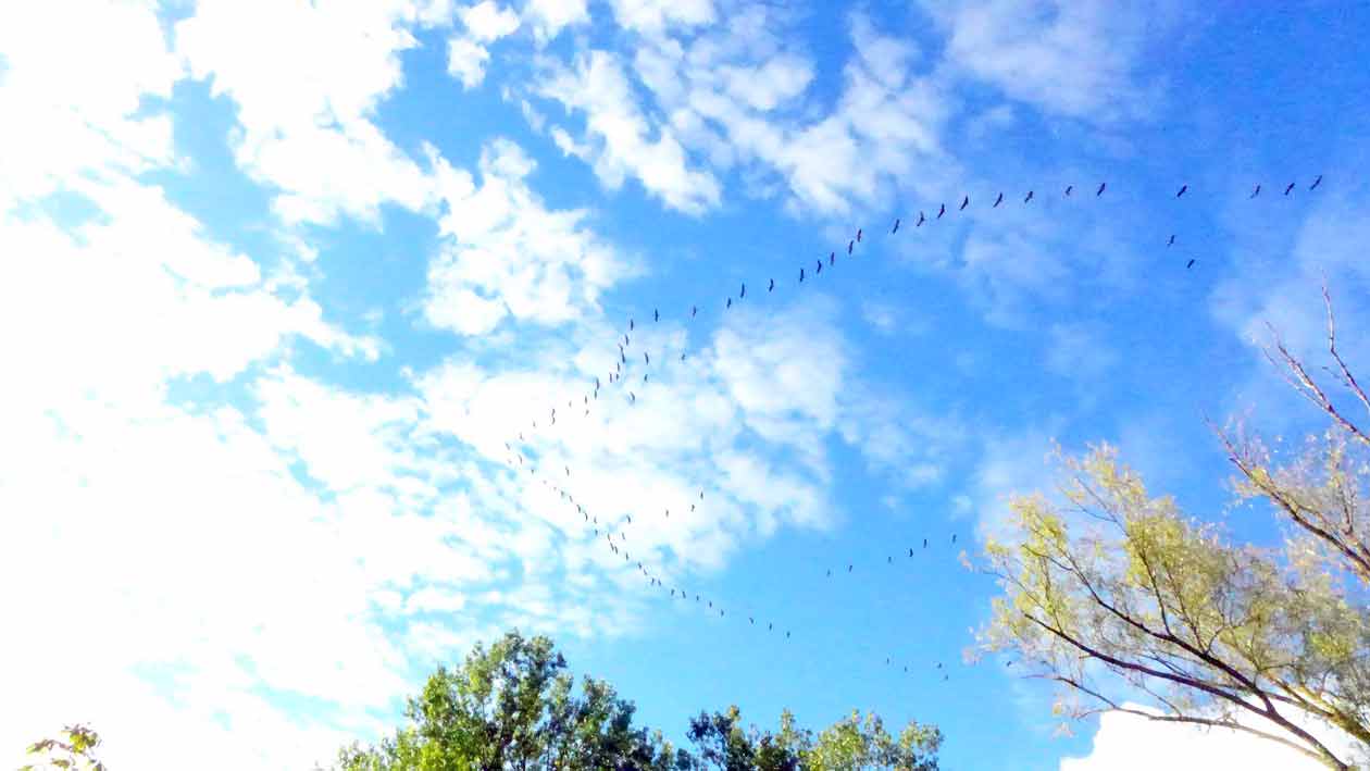 sie formieren sich wieder nach langen Übungen schreiend umeinander fliegend nun in gewohnten Keilen ihr Ziel gefunden und wer vorne fliegt und wer an den Seiten