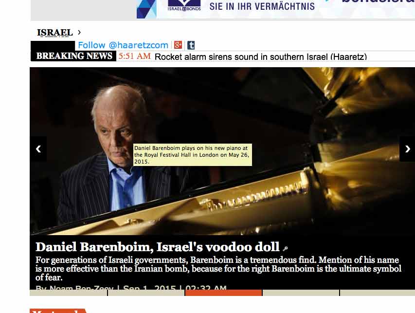 For generations of Israeli governments, Barenboim is a tremendous find. Mention of his name is more effective than the Iranian bomb, because for the right Barenboim is the ultimate symbol of fear.