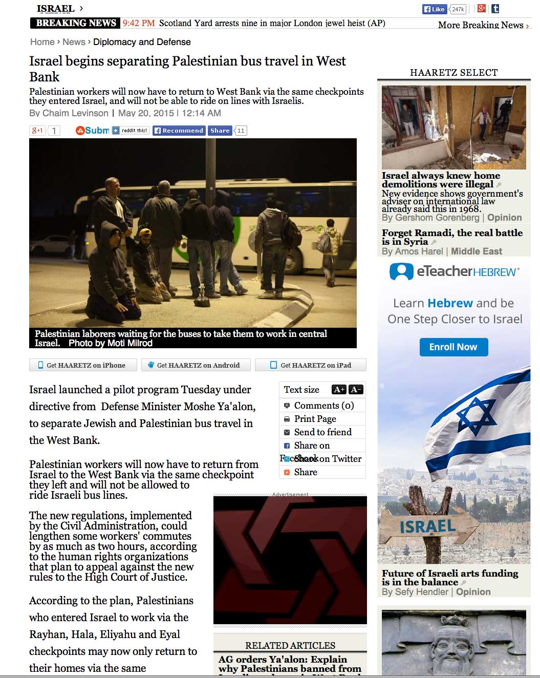 Rassismus: Palästinenser aus dem Westjordanland dürfen nicht mehr in denselben Bussen fahren wie Israelis