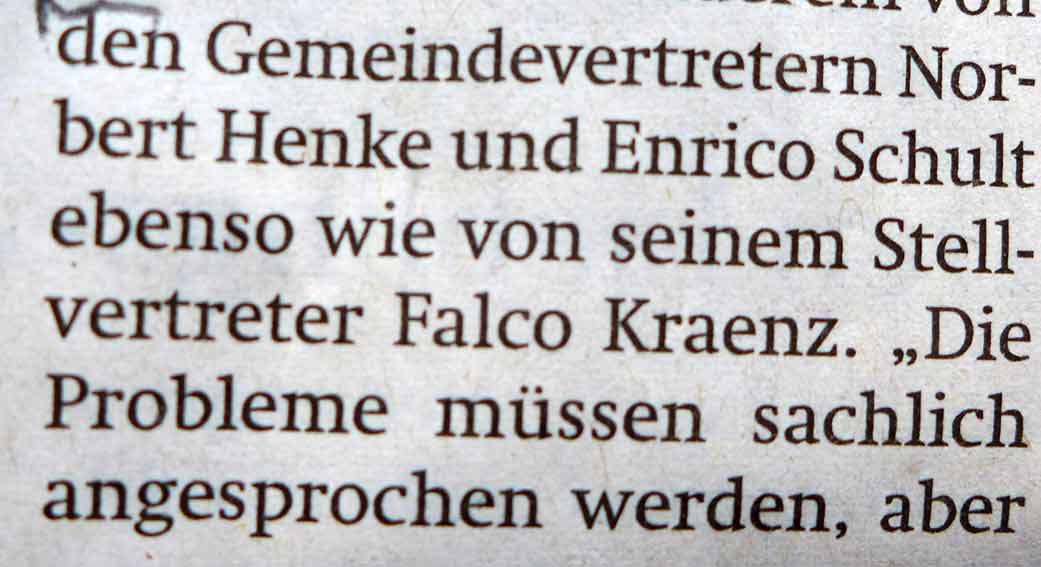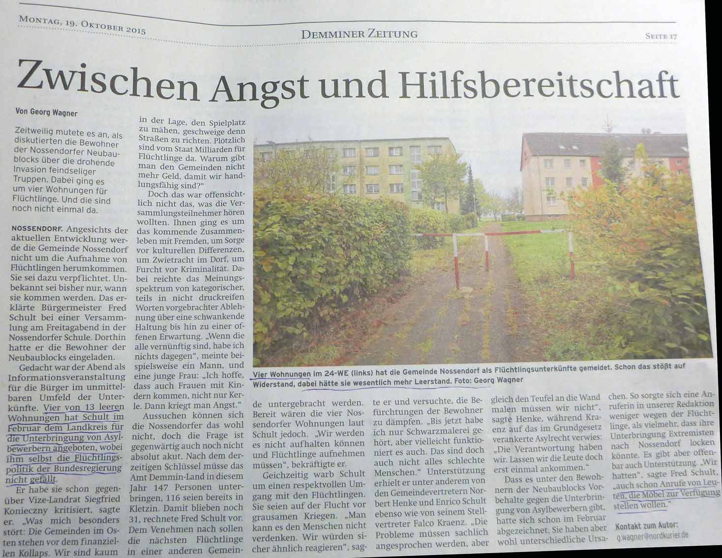 Wieso Zettel des Bürgermeisters an jeder Tür. Warum nicht im Namen der gewählten Vertreter der Gemeinde. Warum wurde nicht informiert, dass für Flüchtlingsfragen in Zukunft aus Demmin das Bauamt und dessen Wohnungsverwaltunung, zusammen mit dem Amt Demmin Land zuständig sein werden und was das heisst. Warum eine Zusammenkunft ohne Dorfbewohner.