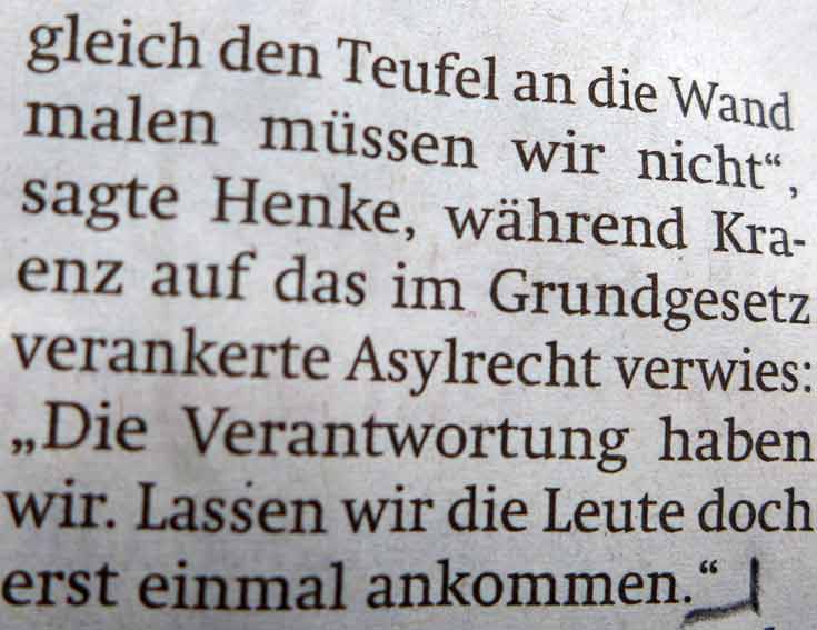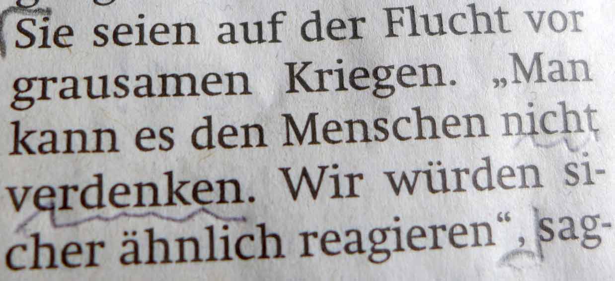 werden nicht aufhalten können, werden aufnehmen müssen, den Menschen nicht verdenken..., nicht alles schlechte Mensch(wie manche doch?). So sprechen und denken nicht alle Gemeindevertreter, siehe unten.