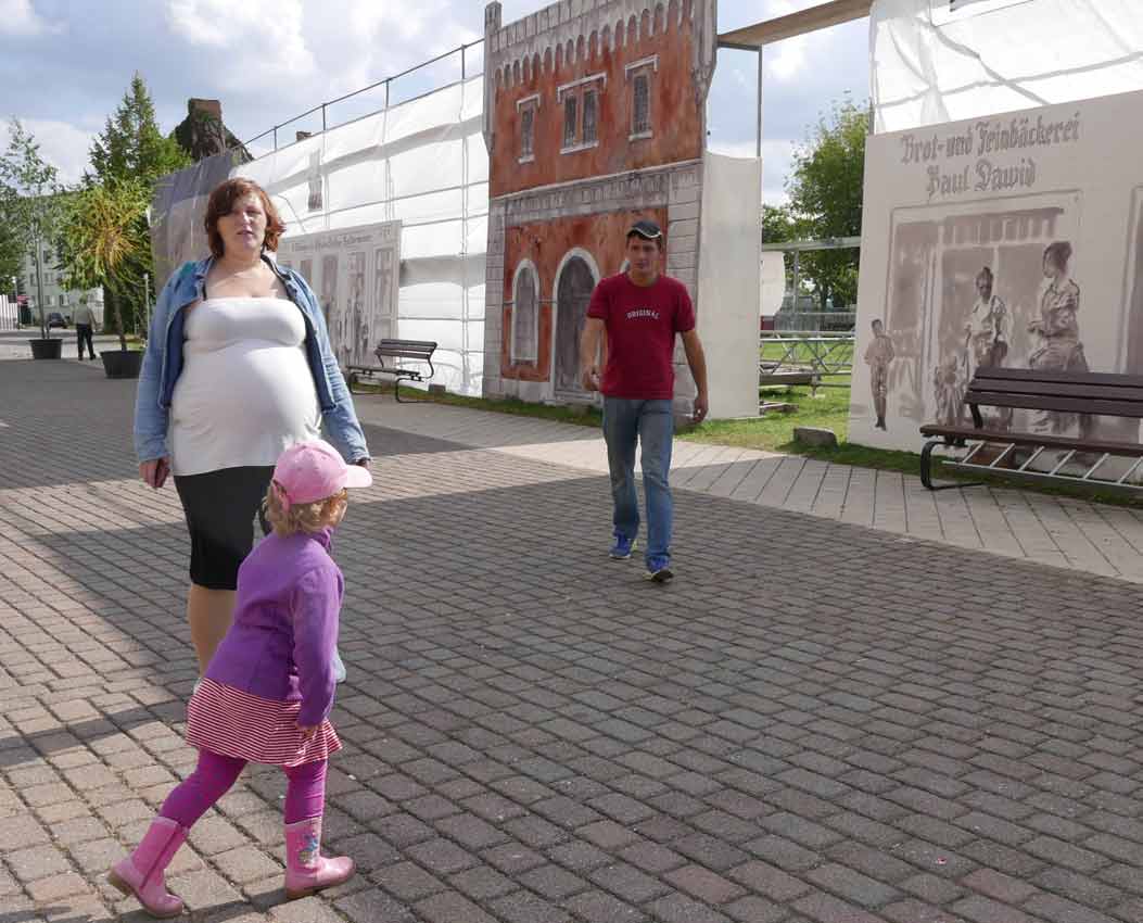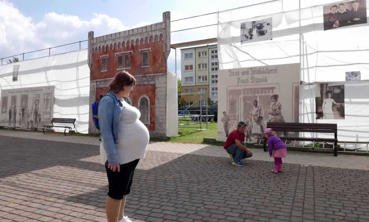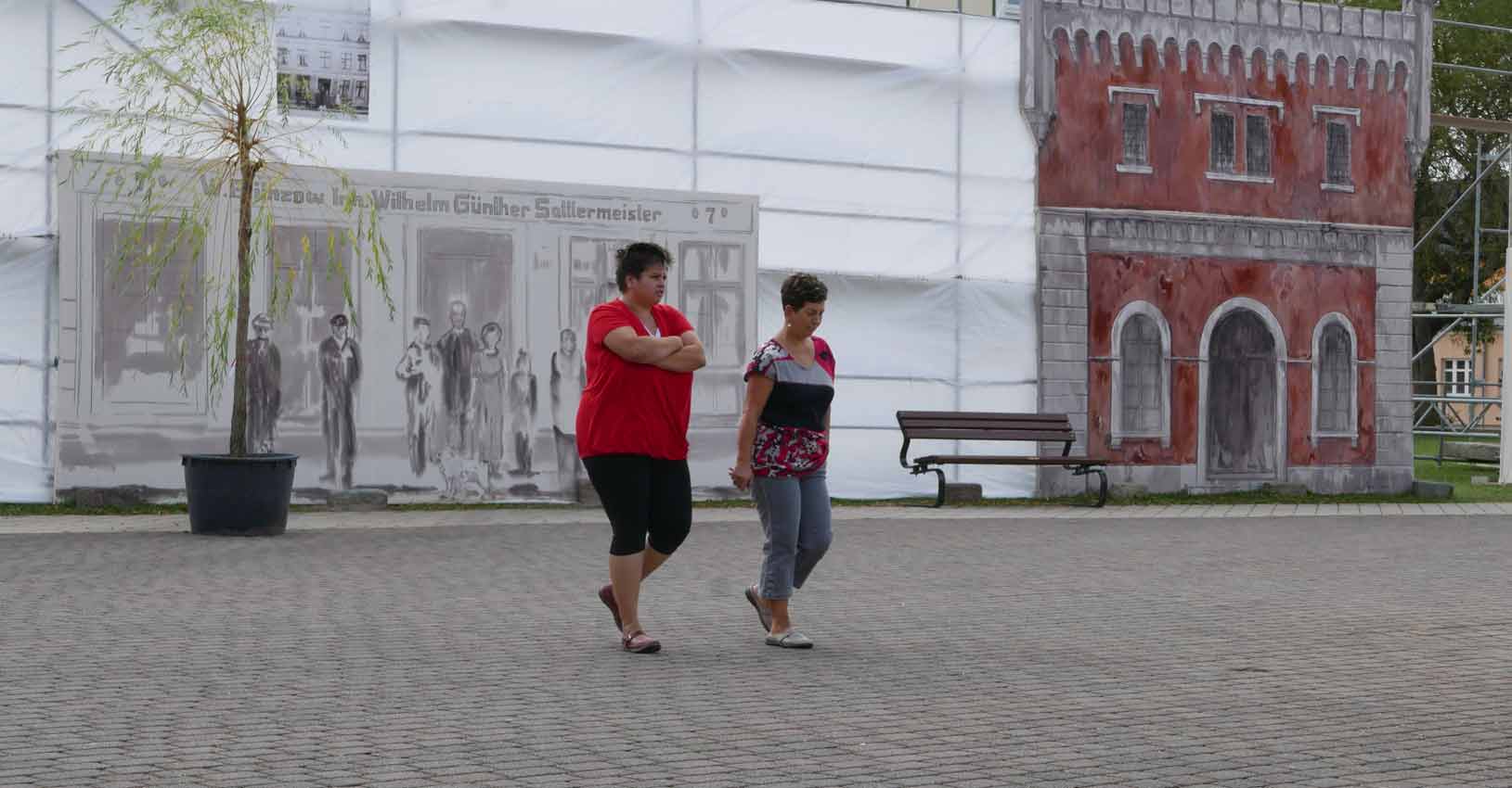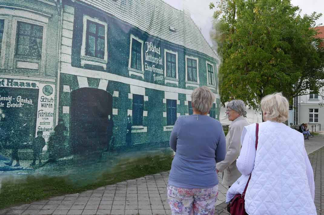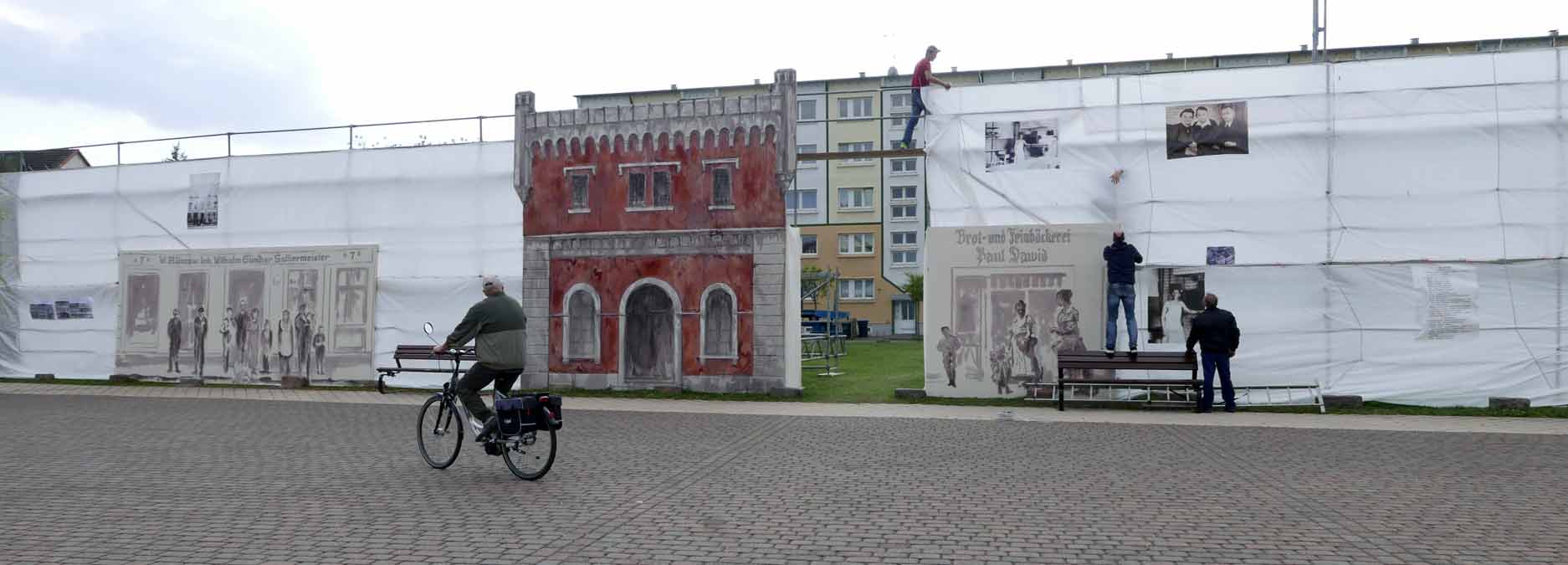 Zu sehen auf das Haus der Mutter Günther, die Zeit ihres Lebens schwieg, über das was ihr geschah 45. Vom Schicksal der Frau Feindt links um die Ecke des Kinos, wissen wir schon.