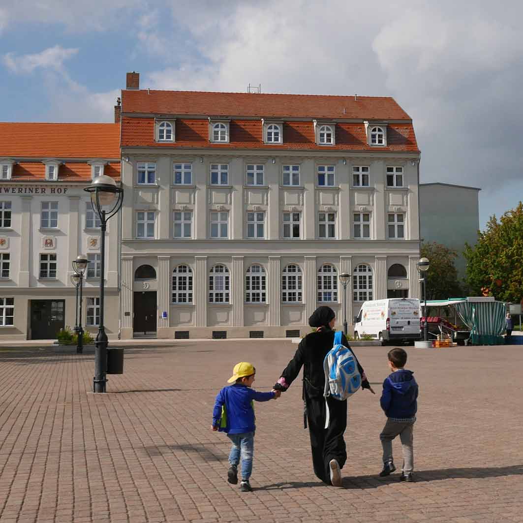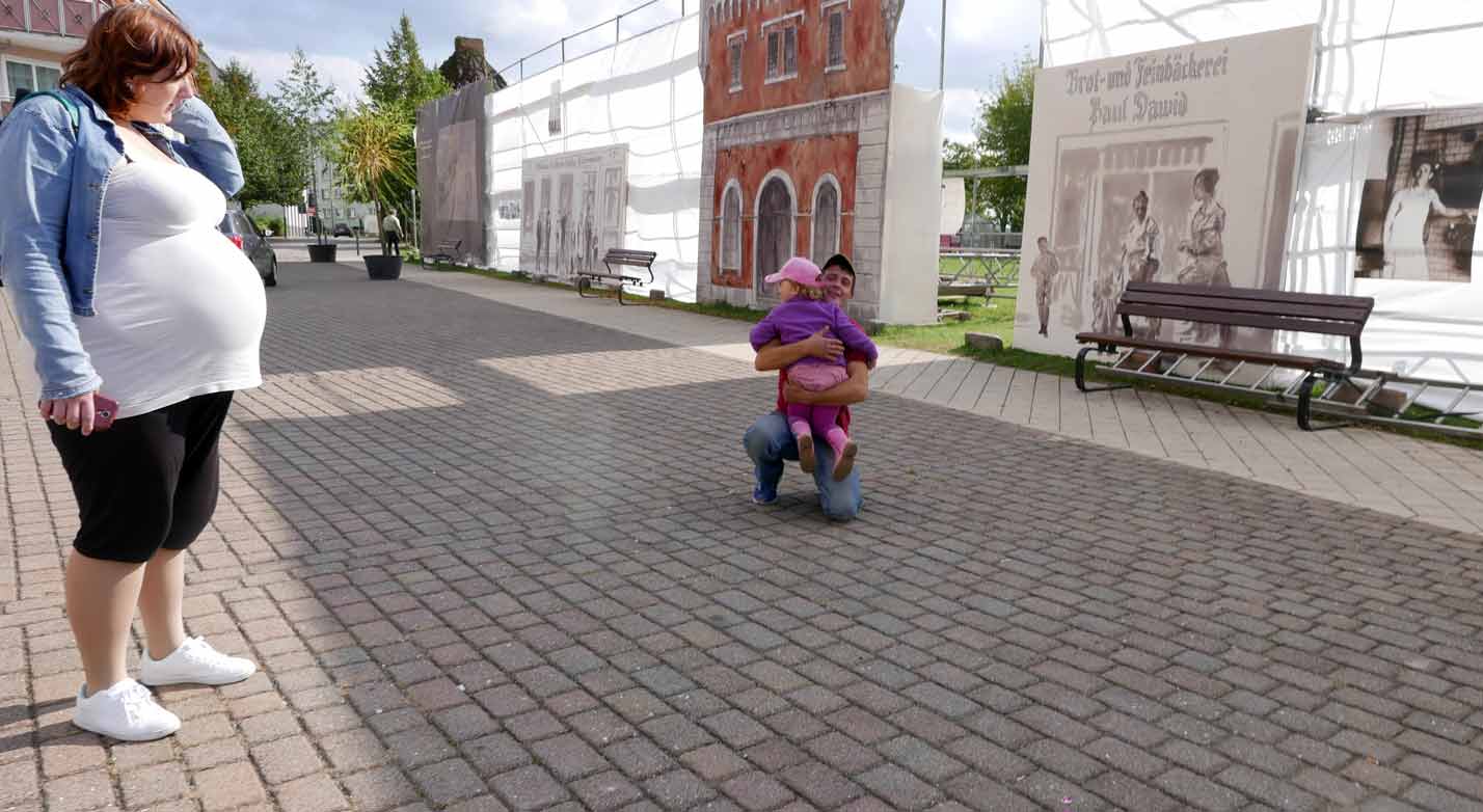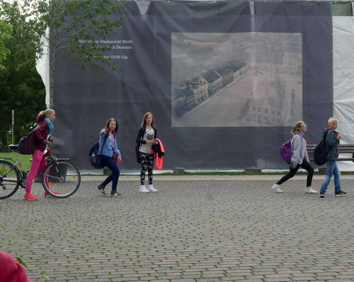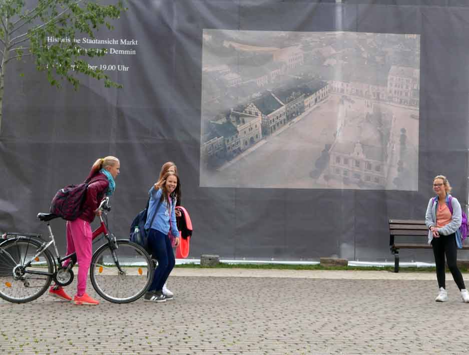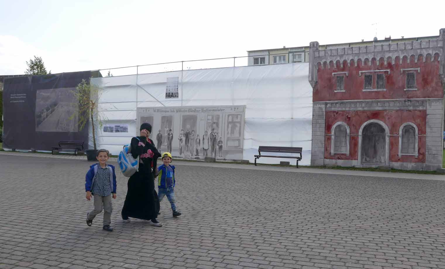 Zu sehen auf das Haus der Mutter Günther, die Zeit ihres Lebens schwieg, über das was ihr geschah 45. Vom Schicksal der Frau Feindt links um die Ecke des Kinos, wissen wir schon.