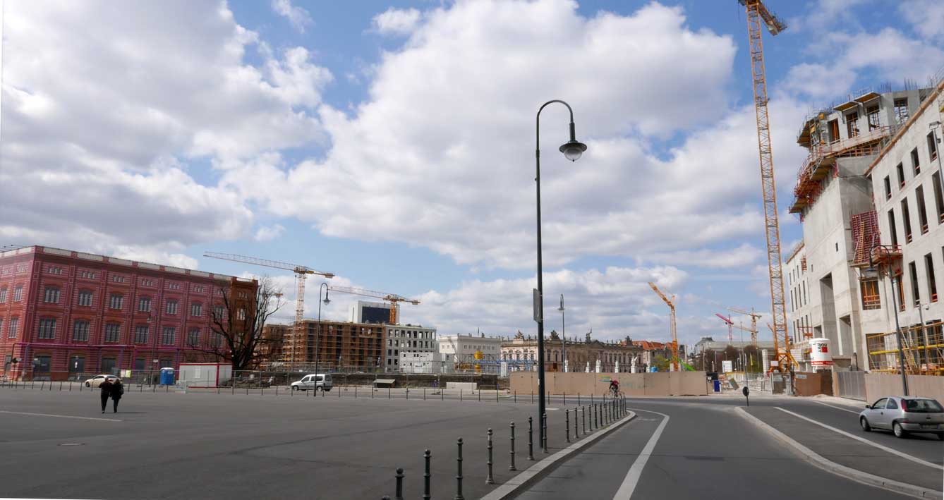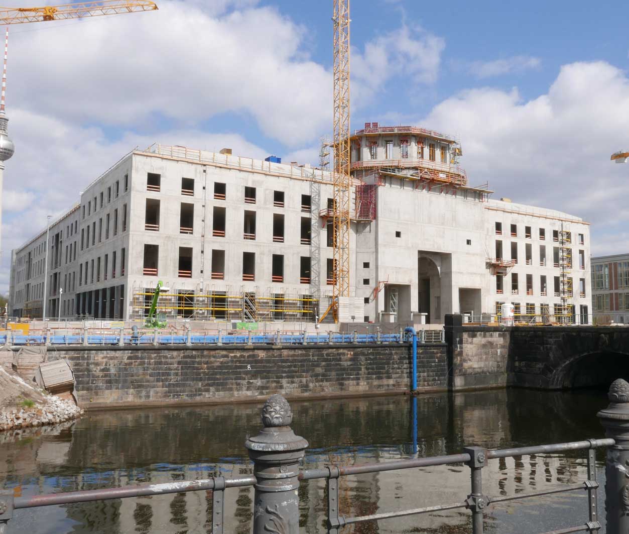 das neue Schloss aus Beton mit historischen Fassaden soll nun im Inneren Humboldt gewidment werden. Der Anspruch für uns im zentralen Ort heute wird noch zu finden sein. Geistig und als Form. Dass er auch zu dem unseren wird.