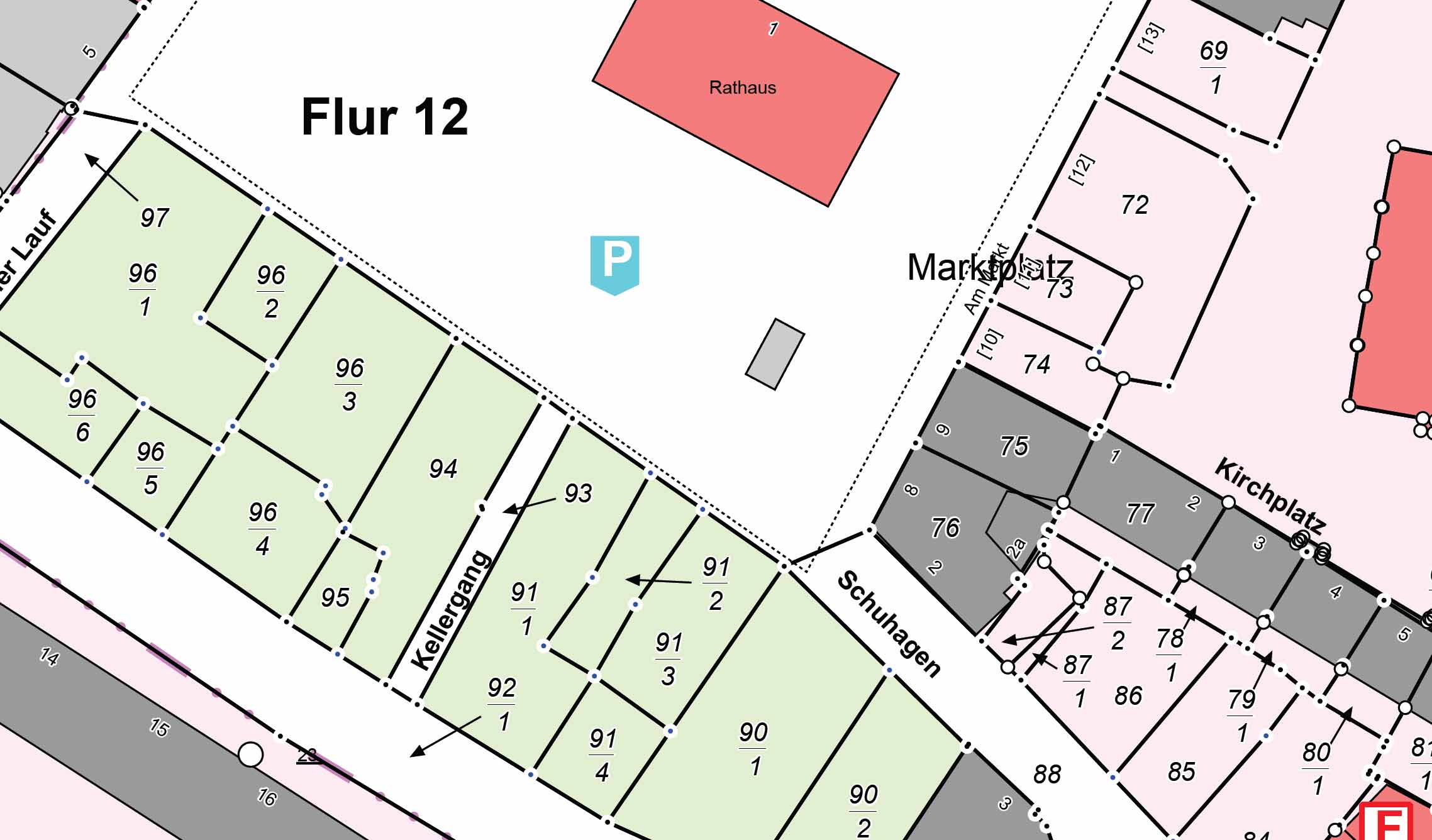 eingeteilt in Stücke des Grundes in der Mitte der Stadt