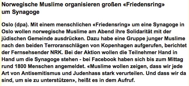 Frieden den Juden von Seiten der Muslime selbst, unsere Medien sind begeistert
