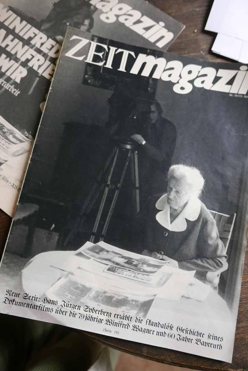 Auf dem Weg diese Gedanken sinnlich im Film erfahrbar zu machen, kamen wir in Wahnfried bei Winifred Wagner vorbei, die von diesem Alltag und Richard Wagner und dann auch den Figuren der Zeit viel zu erzählen hatte. Dies darzustellen hier und chronologisch als Bericht zubewahren, ohne eigene eigenen Zutaten durch andere Quellen aus Opern oder Wochenschauen und auch nicht aus dortigem Haus, war dann der Film dazu. Warum verweigern sie das in Bayreuth. Früher war es Wolfgang Wagner, um Unheil von sich und den Festspielen wegen zu grosser Nähe abzuwenden. heute ist es eine Mischung aus Ignoranz. Hochmut der Ämter und Eitelkeit(Design mit eigenem Kunstanspruch).