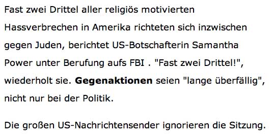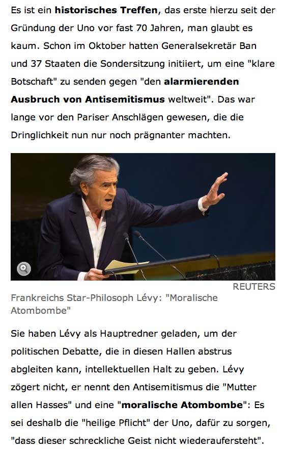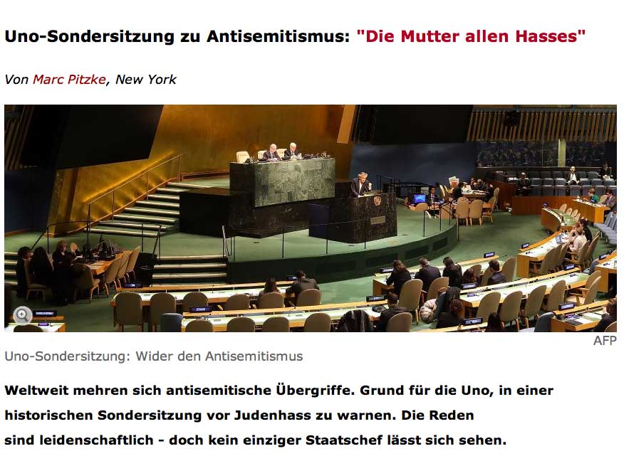 "Juden wurden vertrieben, geschlagen, gedemütigt und ermordet. Die grösste Monstrosität des Antisemitismus war der Holocaust", sagte Ban. "Die Vereinten Nationen wurden auch dafür gegründet, damit sich so etwas nicht wiederholt."