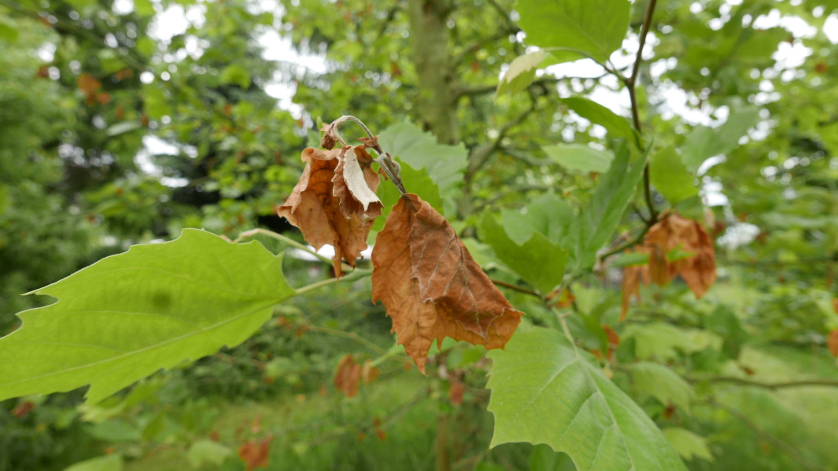 ich kann Sie beruhigen, bei der Platane hat keiner einen Anschlag verübt, sondern es ist ein Pilz , der heißt Massaria -Platanen-Triebsterben.Ratsam ist es , alle befallenen Triebe einzukürzen und in die Mülltonne entsorgen oder gleich vor Ort zu verbrennen.