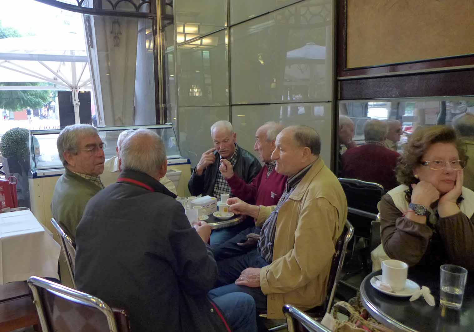 im Cafe Nicola aus der Generation der Schuhputzer, wo sonst, gleich daneben, sitzen wir noch unter ihnen