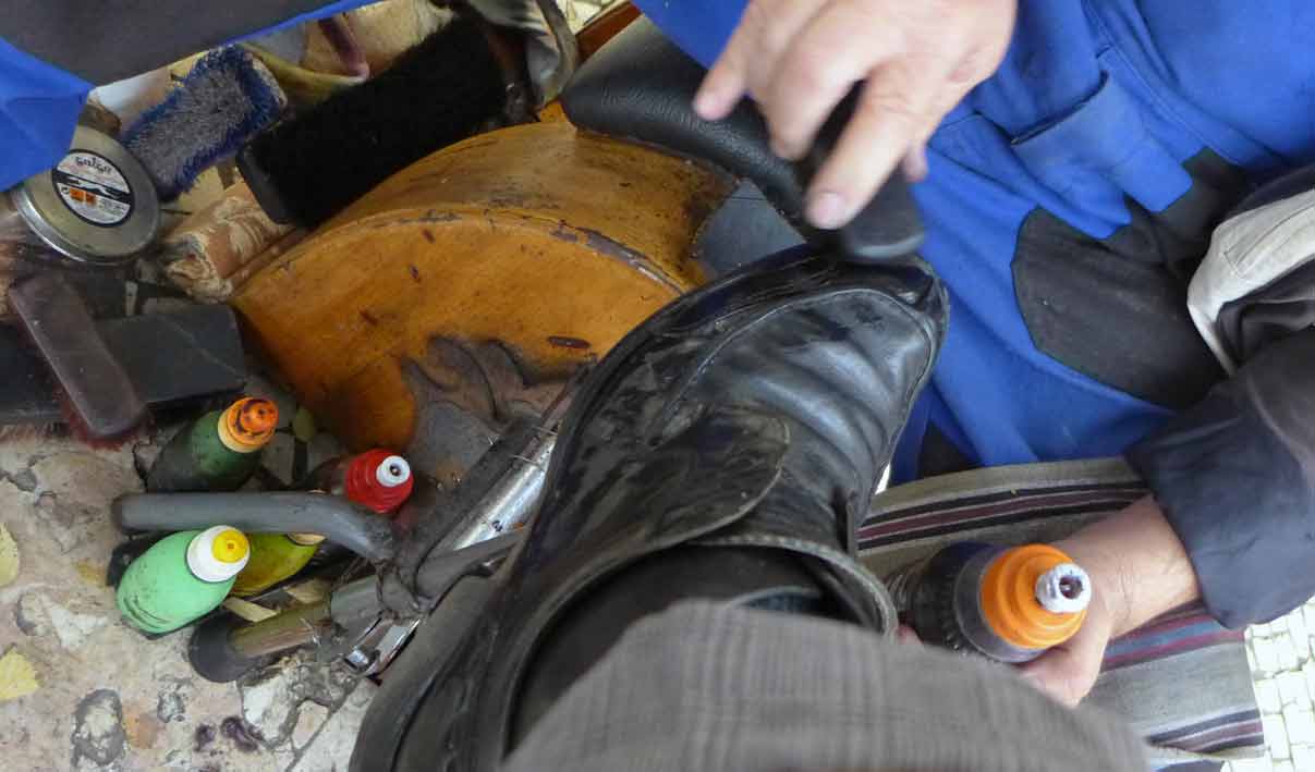 aber wo finden sie noch die Schuhe ungeklebt aus Leder und mit alten Narben