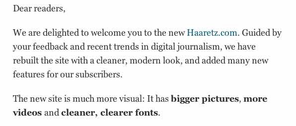 war Haaretz denn vorher schmutzig(now cleener) die Bilder grösser und informativer, die Quellen deutlich und die video-links beispielhafte Auskünfte aus einem hotspot der Welt