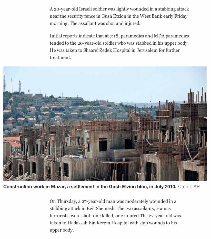 die wortlose Montage des Bildes von 2010, der Siedlungen zwischen den Wort-Nachrichten auf den Strassen, mit den aktuellen Messerattacken verbotener Aufständler-Bilder.
