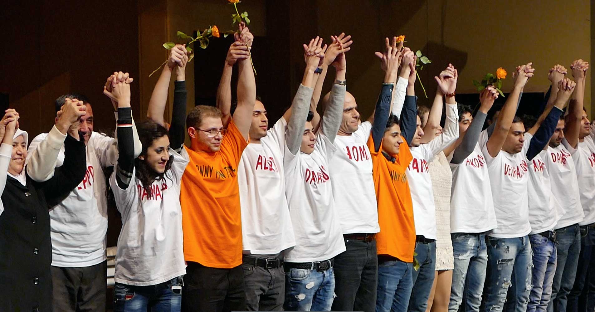 so haben wir uns denn unsere Flüchtlinge noch mal auch in Nossendorf aufgenommen und selbst geschaffen. Standgehalten, auf unsere Weise. In dn Lüften weltweit als Botschaft aus einem anderen Land und Nossendorf, auch mit der Frage, ob denn in der Realität in diesem Zustand hier wirklich die Voraussetzungen gegeben wären, es in der Lage wäre, in diesem Zustand, trotz leeren und warmen Räumen, hoch dotiert, mit reichen Feldern, ob andere, diese Gäste des Landes, eben noch den Gefahren entkommen, ob wir in der Lage, Hilfesuchende zu beherbergen. Trotz bester Angebote neu eingerichteter Kindergarten und Busverbindungen und ärztlicher Betreuung am Ort, aber in der Hand hochmütiger Verwaltugen ohne Diskussionen zu diesem Zustand und ihren Unfähigkeiten zu Änderungen aus eigenen Kräften, eine andere Art von innerer Armut annehmend, ob wir das ihnen offenen Herzens und guten Lachens ihrer offenen Arme und der Demut des Danks, ob wir ihnen das trotz Allem wünschen sollten, zu ändern, was hier zu ändern wäre. Sie kommen offenen Herzens mit offenen Armen hoch nach Oben. Mit zuem Herzen geht es nicht. Diese Musik.