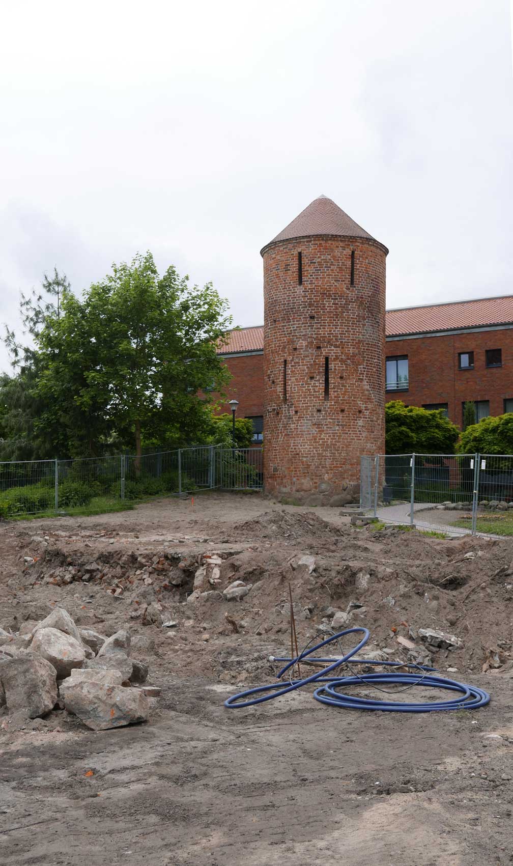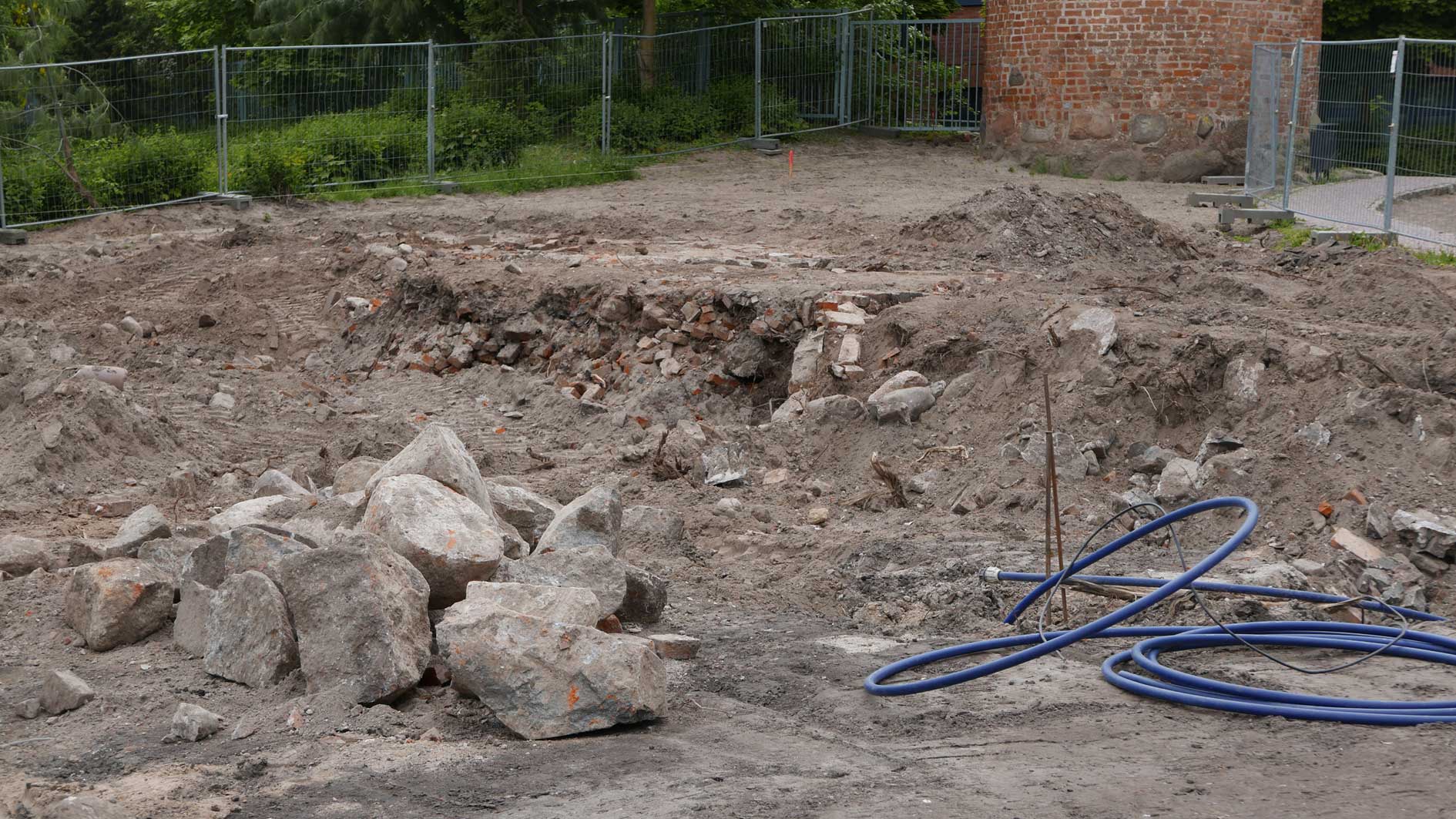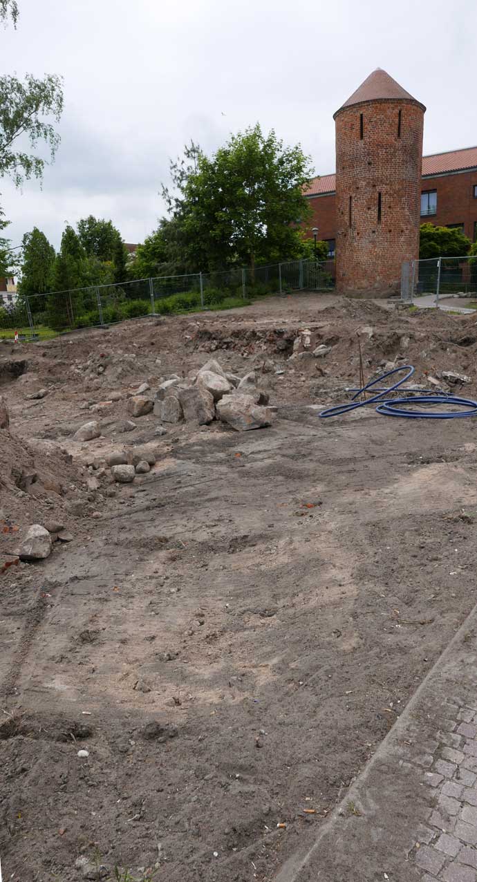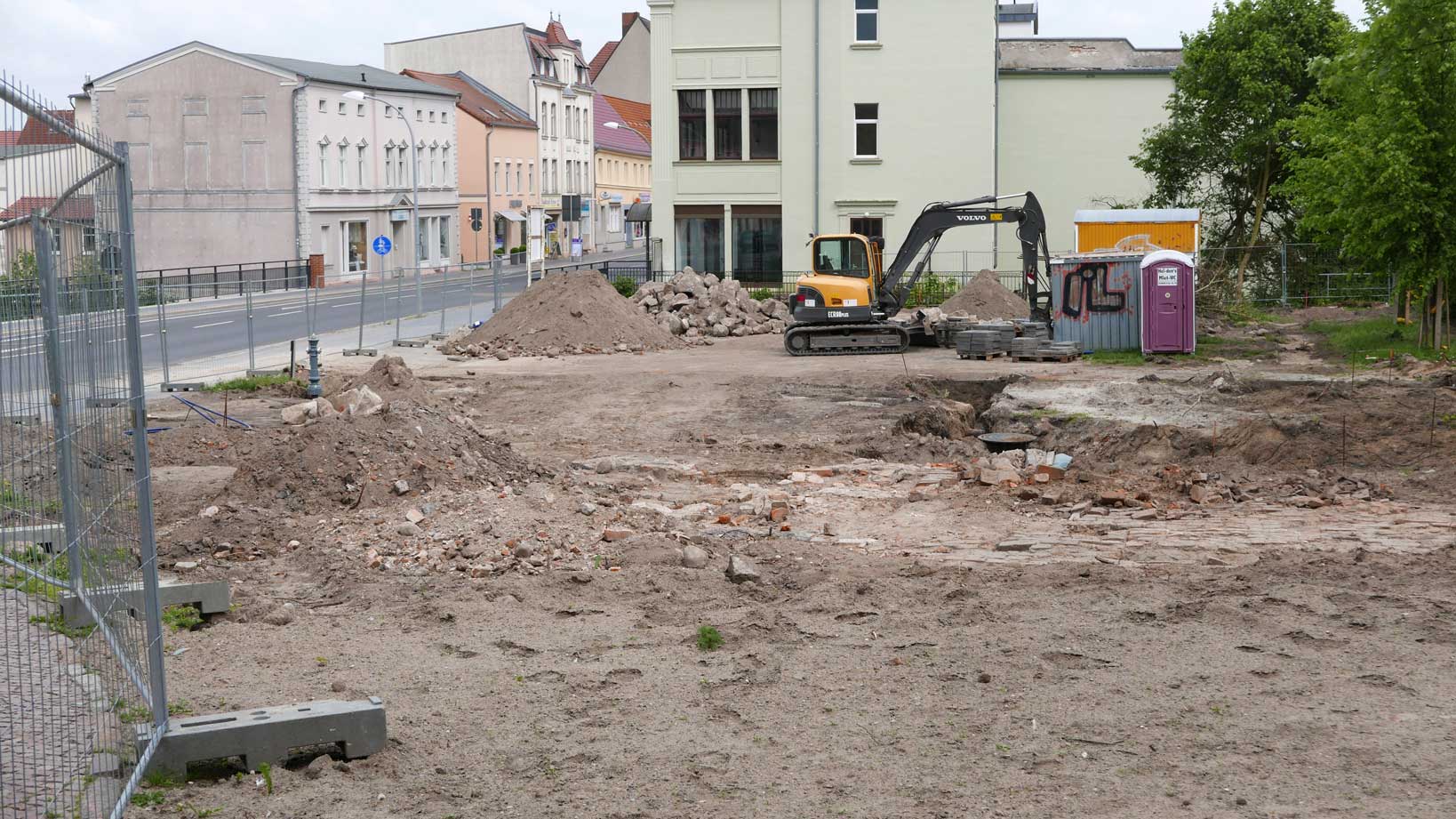 Die Baumaßnahmen in Demmin finden auf Grundlage einer ordnungsgemäßen denkmalrechtlichen Genehmigung statt, d. h., die Genehmigung zur Veränderung des Bodendenkmals „Altstadt Demmin“ ist unter der Auflage erteilt worden, dass die betroffenen Teile des Bodendenkmals fachgerecht geborgen und dokumentiert werden. Diese Bergungs- und Dokumentationsarbeiten werden von einer unserer Mitarbeiterinnen zur Zeit ausgeführt. Ließe man die freigelegten Befunde anschließend offen liegen, würden sie unter dem Einfluss der Witterung (und evtl. auch durch Vandalismus) in kurzer Zeit zerstört werden. Deshalb ist es aus denkmalfachlicher Sicht erheblich besser, die freigelegten Befunde, soweit sie nicht für die Baumaßnahme abgetragen werden müssen, wieder mit Erde zu bedecken. Anhand der Grabungsdokumentation (Fotos, Zeichnungen und Beschreibungen) ist immer noch nachvollziehbar, was sich dort im Boden befindet bzw. befand. Die Grabungsdokumentation ist auch eine gute Grundlage für eine Erläuterungstafel o. ä., die vielleicht im Rahmen der Neugestaltung aufgestellt werden kann. Das ist allerdings nicht Teil unserer Leistungen, sondern müßte durch den Bauherrn veranlasst werden.