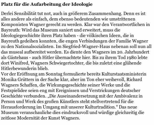 FAZ zur Eröffnung des aktuellen Wahnfried
