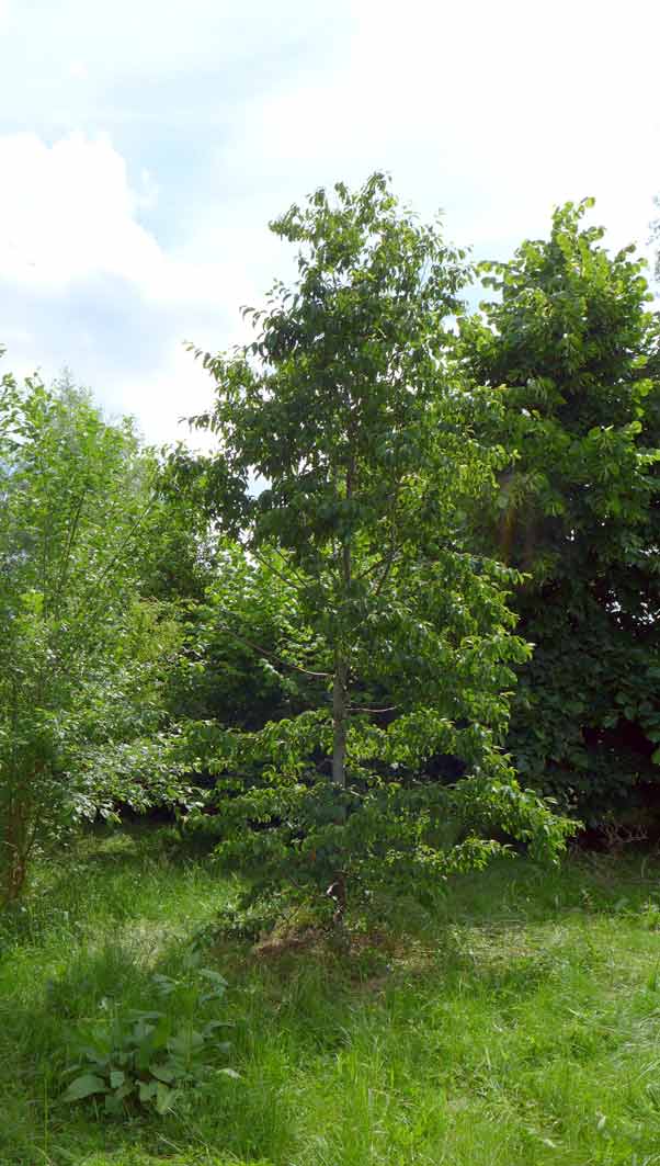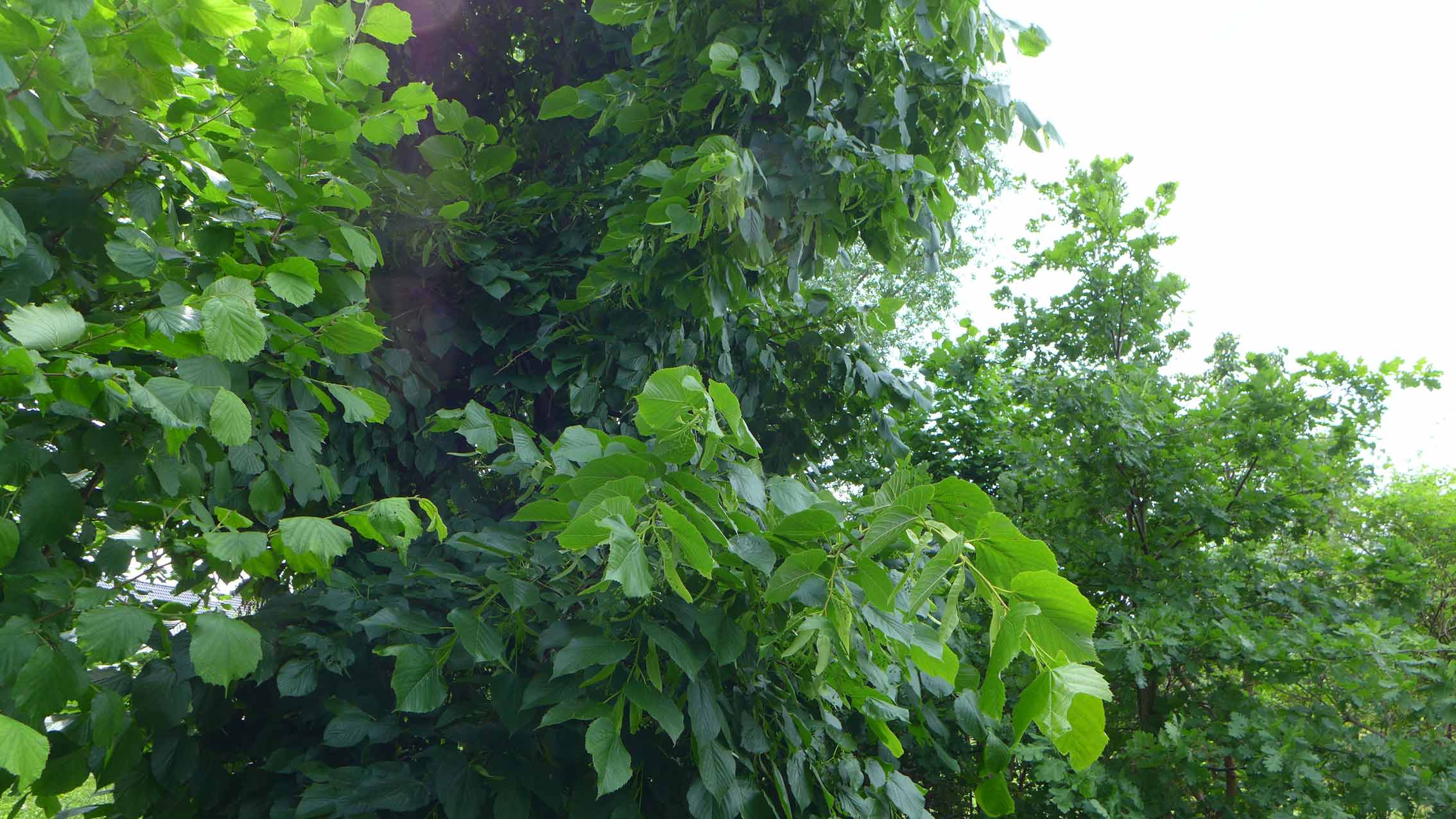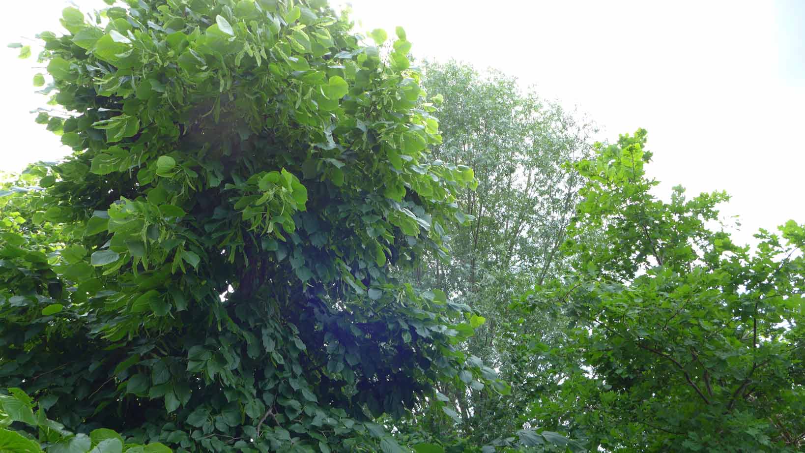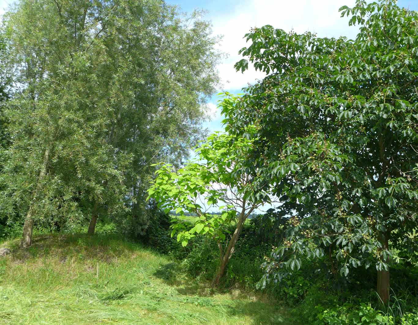 die Eiche wieder ausgetrieben nach Schnitt auf Brusthöhe wegen Pilzbefall und nun frei von den überwuchernden Nachbarn, Vor der Weide, inzwischen als Ersatz gesetzt.