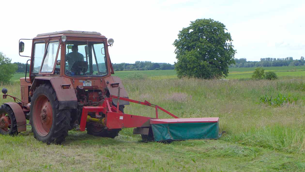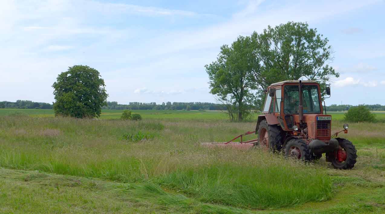 Nachdem die Pferde des Nachbarn verkauft wurden nun Mähen aus Medrow. Wer braucht noch Heu ungepresst(wo lagern). Und Tiere ohne Halle mit Kraftfutter.